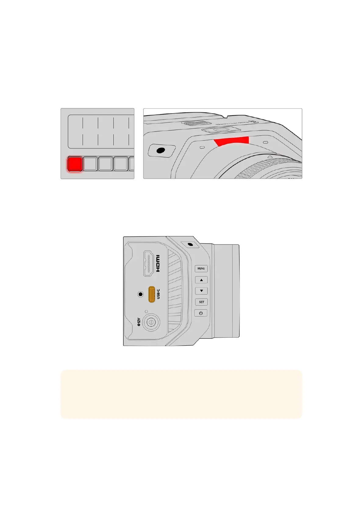 Ihre Micro Studio Camera4KG2 verfügt über ein eingebautes Tally-Licht, um zu prüfen, ob die
