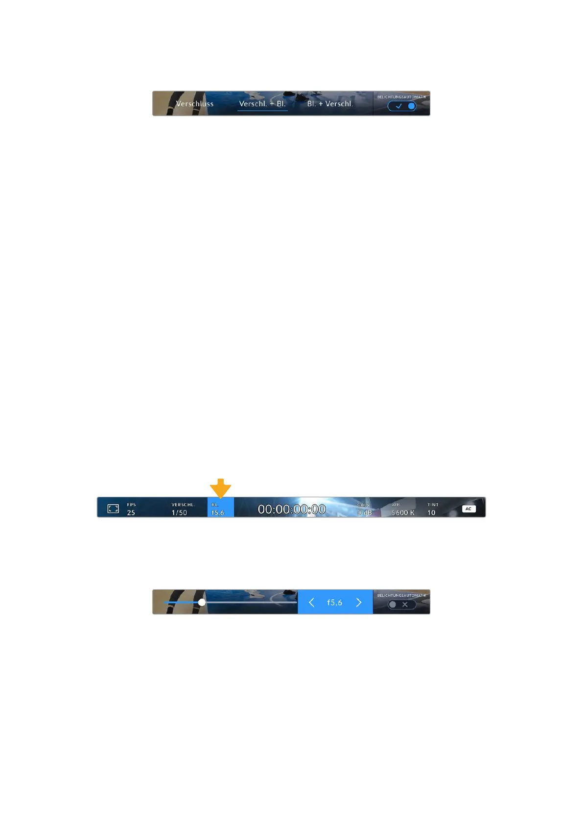 Das Aktivieren der BELICHTUNGSAUTOMATIK über den Schalter ganz rechts im Blendenmenü