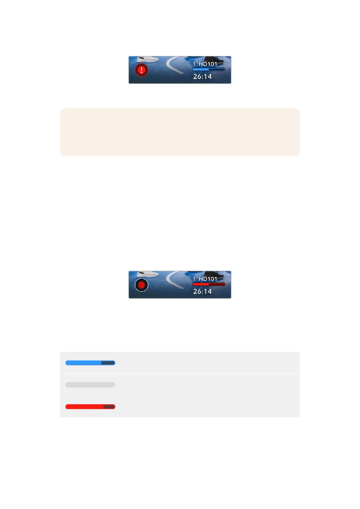 Der über der Aufnahmedauer angezeigte Balken wird je nach aktuellem Füllstand des Datenträgers