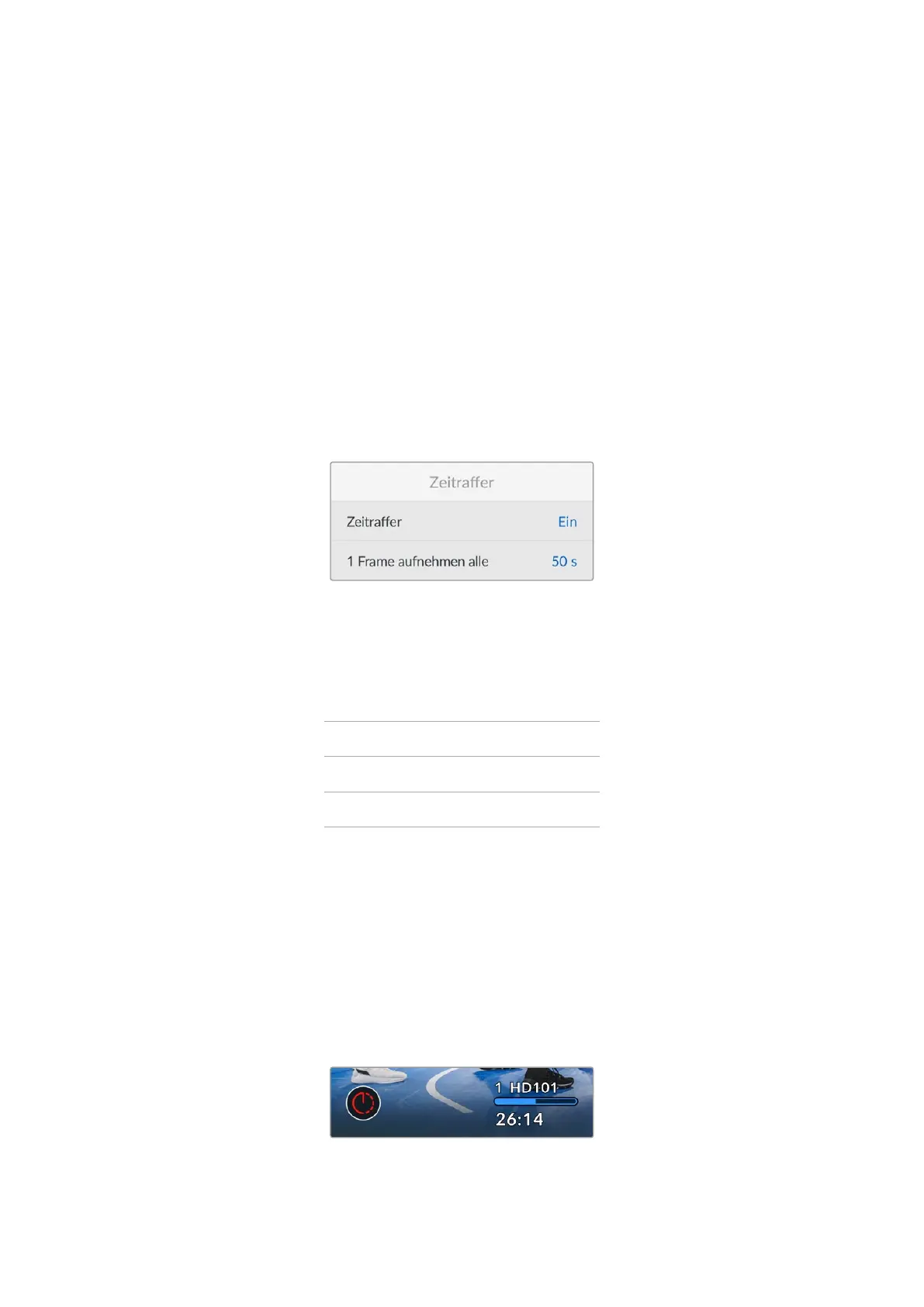 Diese Einstellung aktiviert die „Zeitraffer“-Funktion.