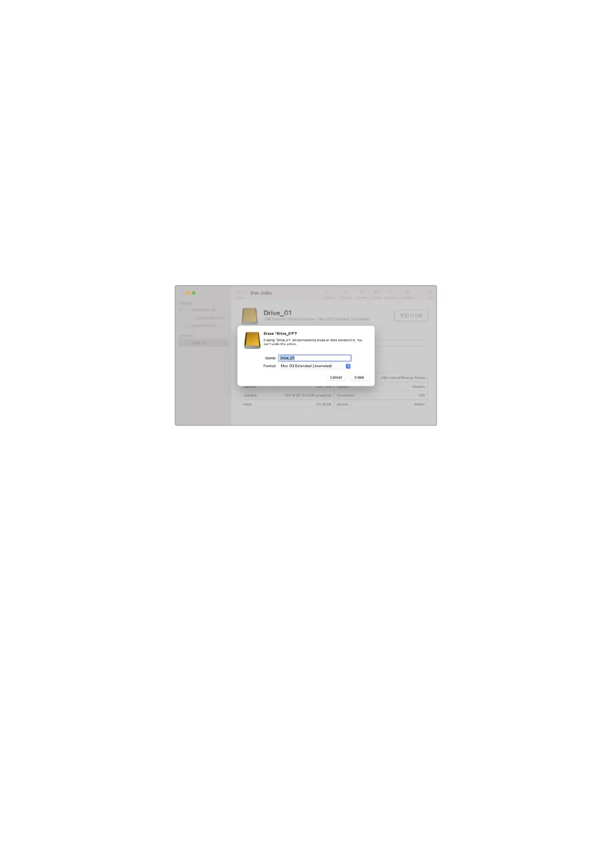 4 Geben Sie als Format „Mac OS Extended (Journaled)“ oder „exFAT“ vor.