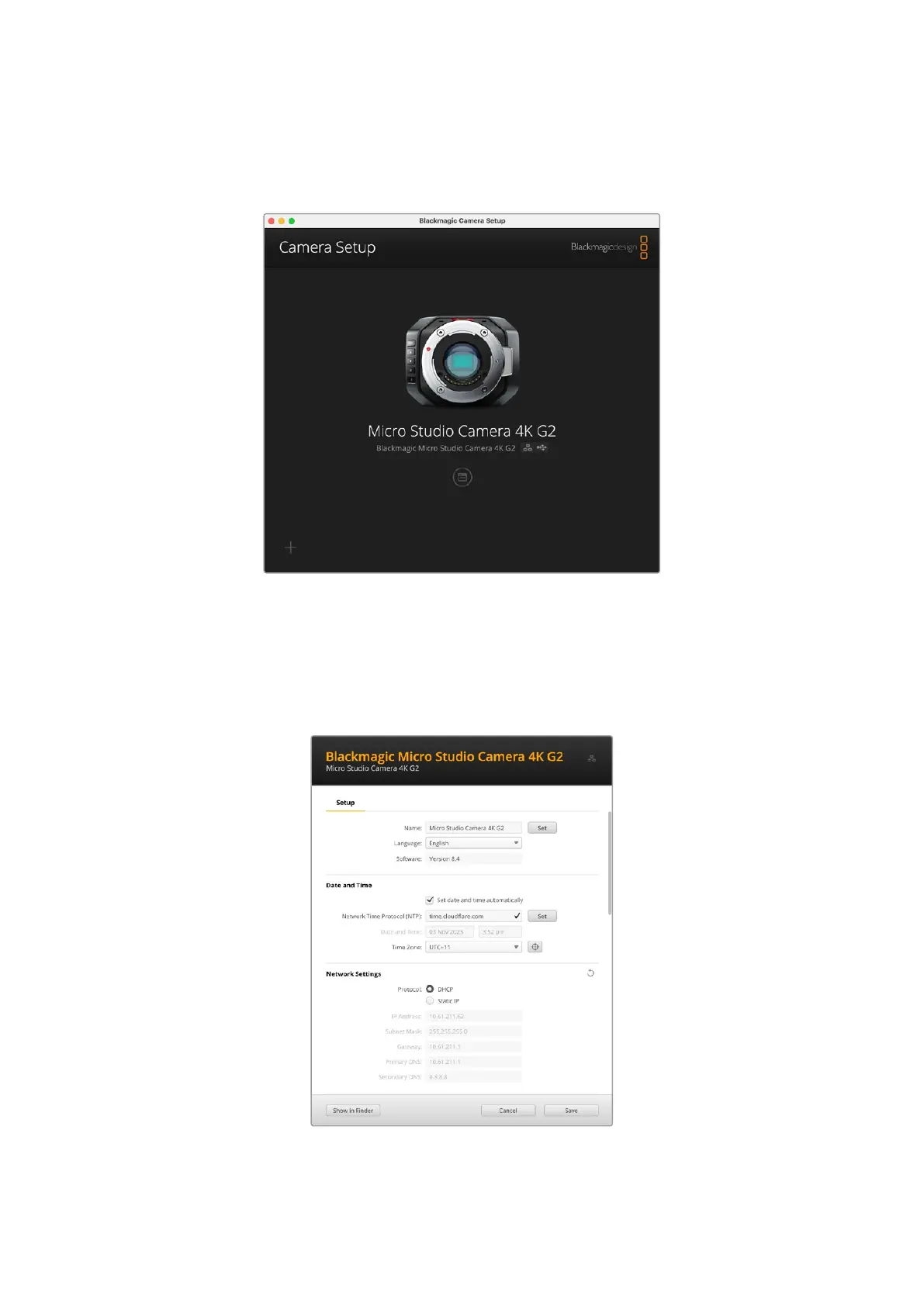 2 Starten Sie Blackmagic Camera Setup. Der Produktname Ihrer Micro Studio Camera 4KG2