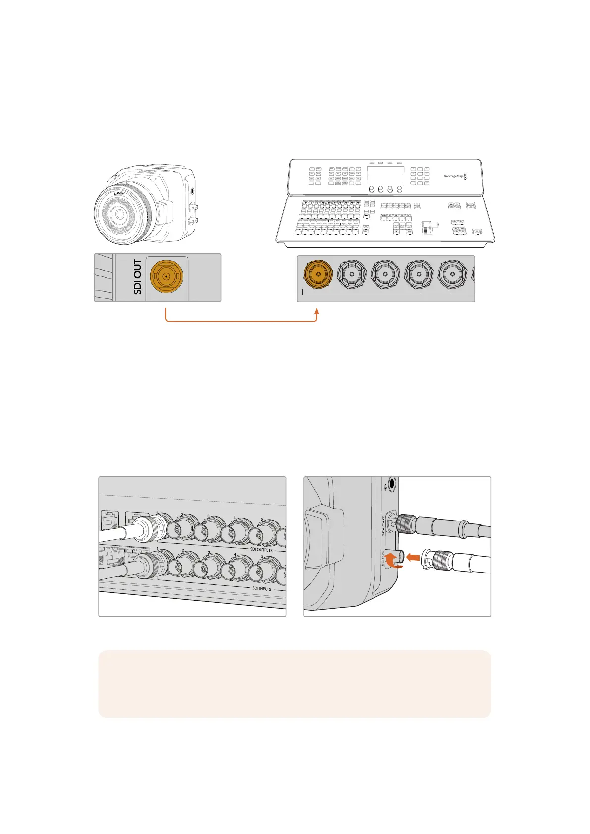 Conecte la salida SDI del mezclador a la entrada correspondiente en la cámara.