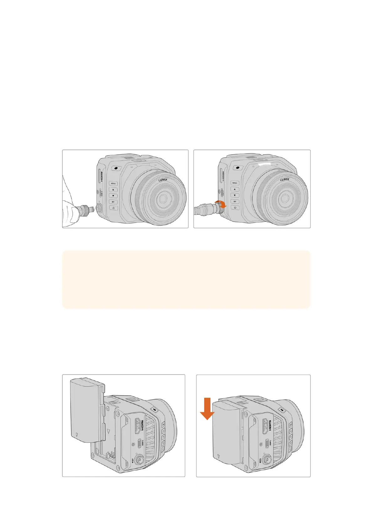 Now that you’ve attached a lens, you will need to supply power to your camera.