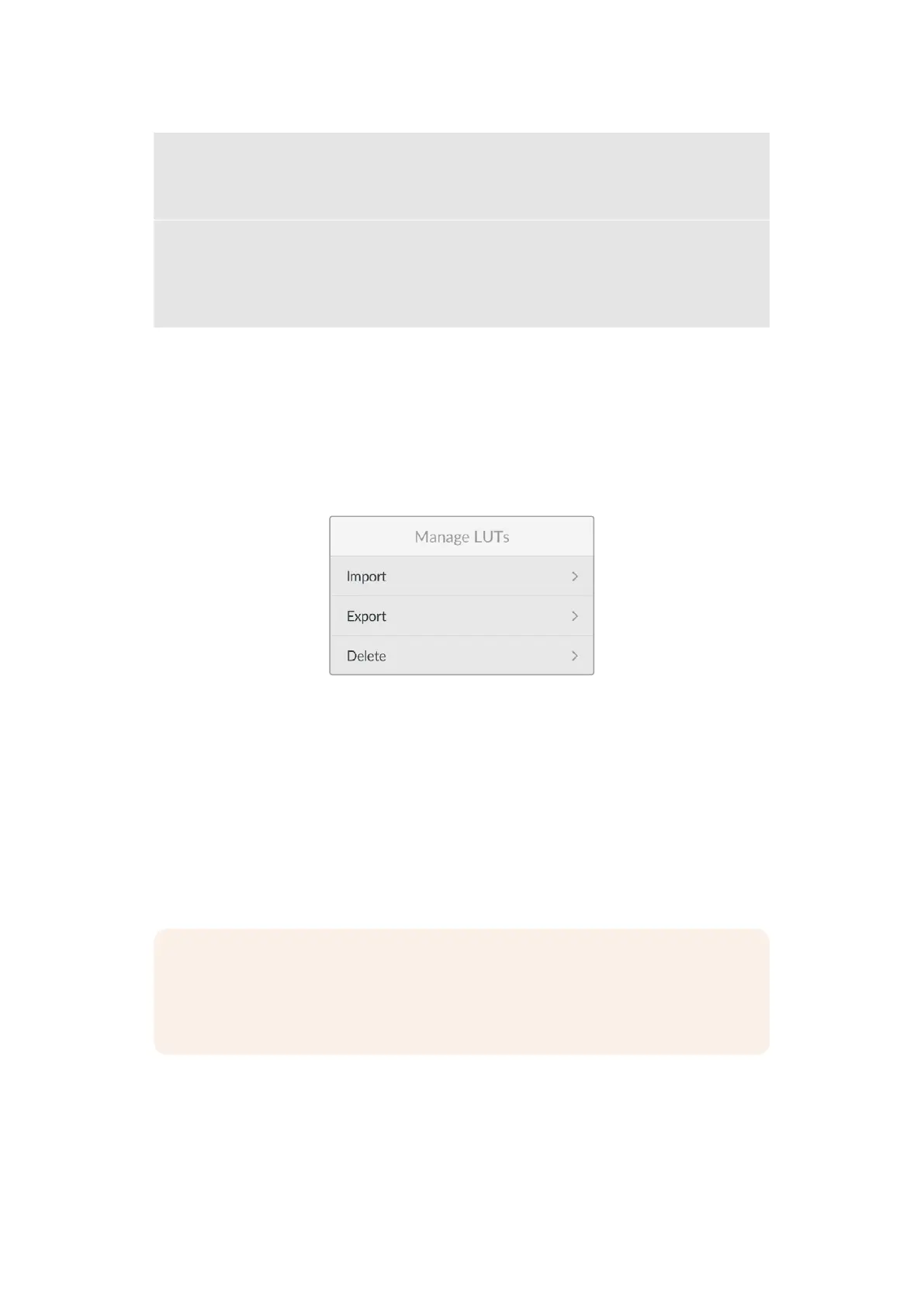 Use the ‘manage LUT’ menu to import, export or delete LUTs.