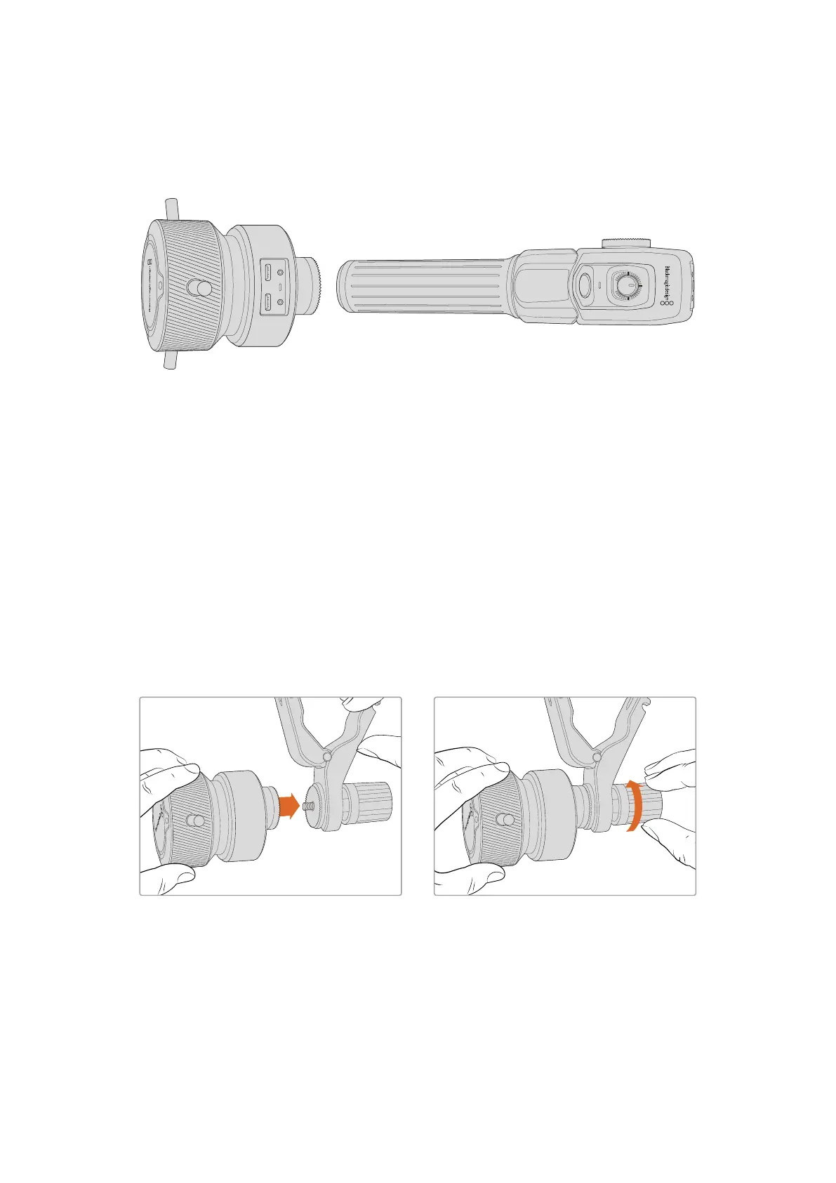 1 Coloque el dispositivo Blackmagic Zoom Demand en la montura del soporte para las rosetas.
