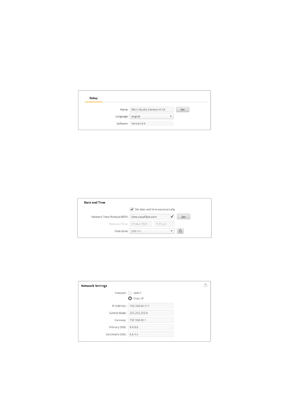 red establecido en el campo NTP. El protocolo predeterminado es time.cloudflare.com, pero es
