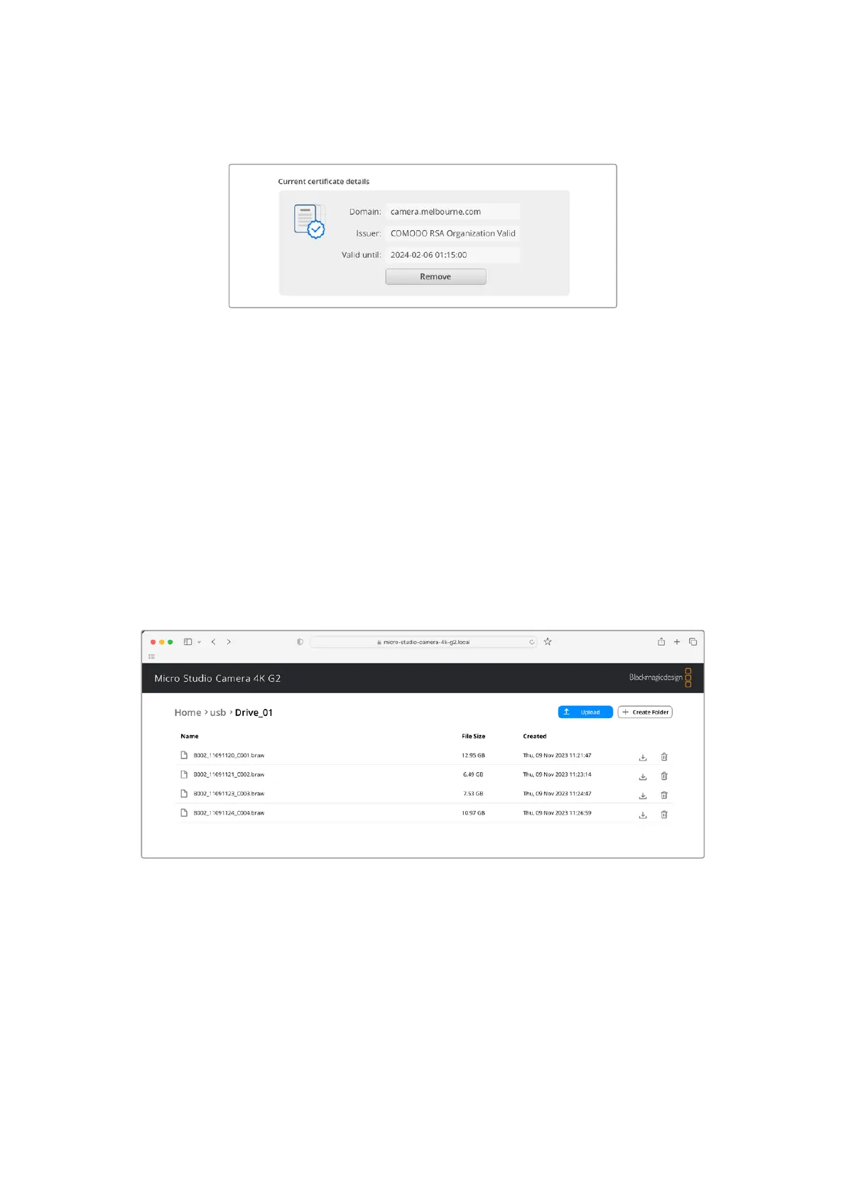Haga clic en el botón de descarga para descargar archivos o en el ícono de la papelera a fin de eliminarlos.