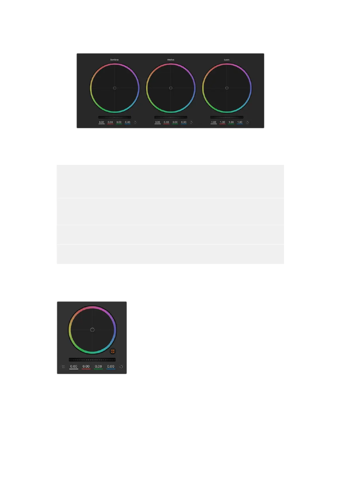 Los controles generales situados debajo de cada círculo cromático permiten ajustar las sombras,