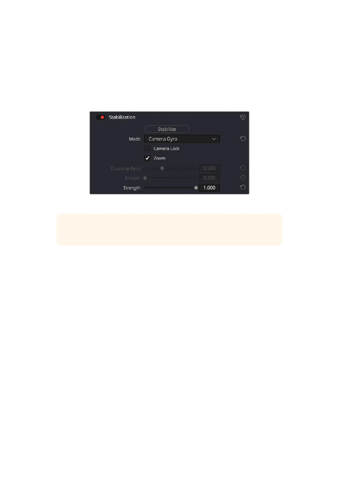 In the inspector window select ‘camera gyro’ to stabilize the clip using gyro data