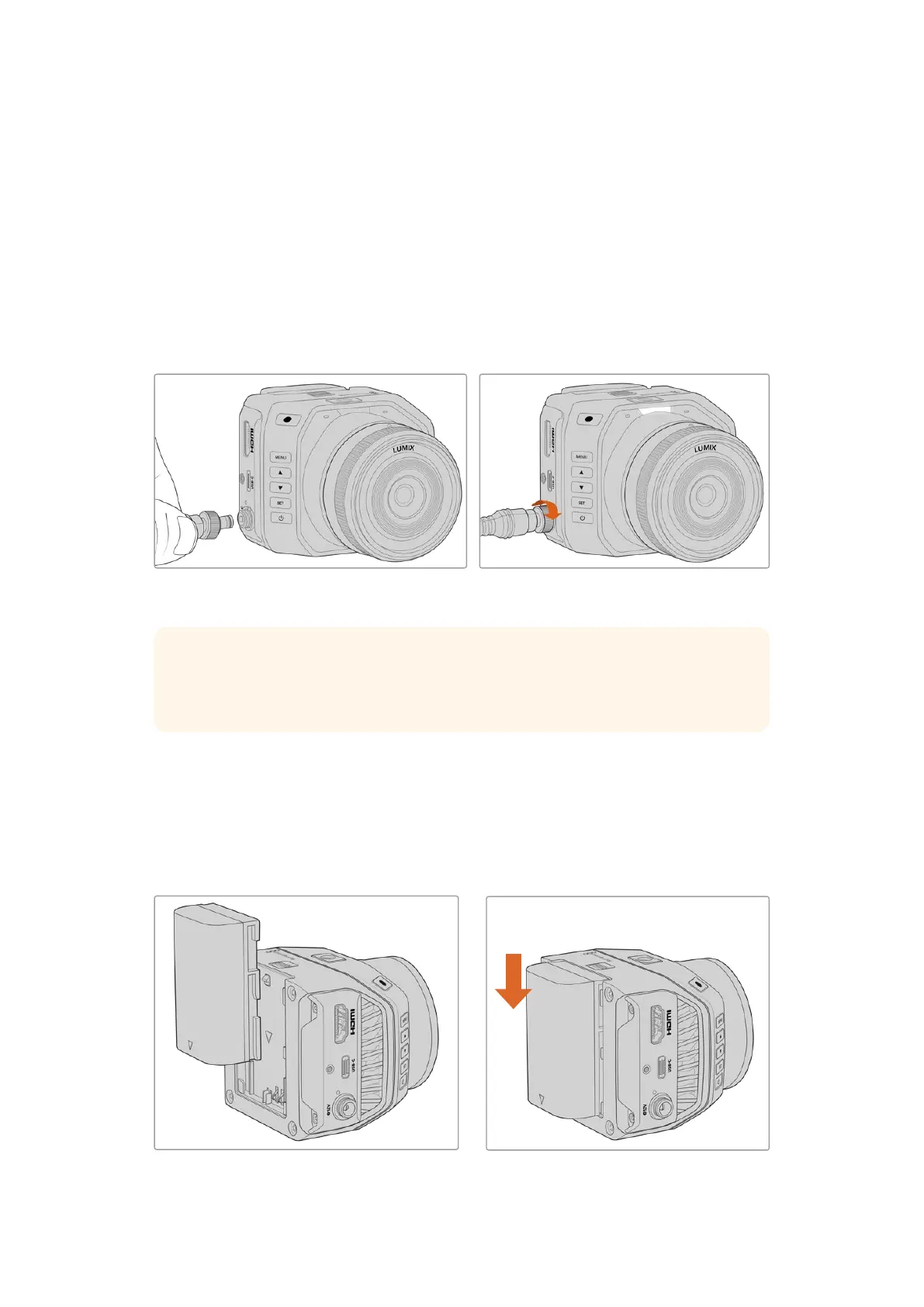 完成镜头安装后,接下来要做的是为摄影机连接电源。