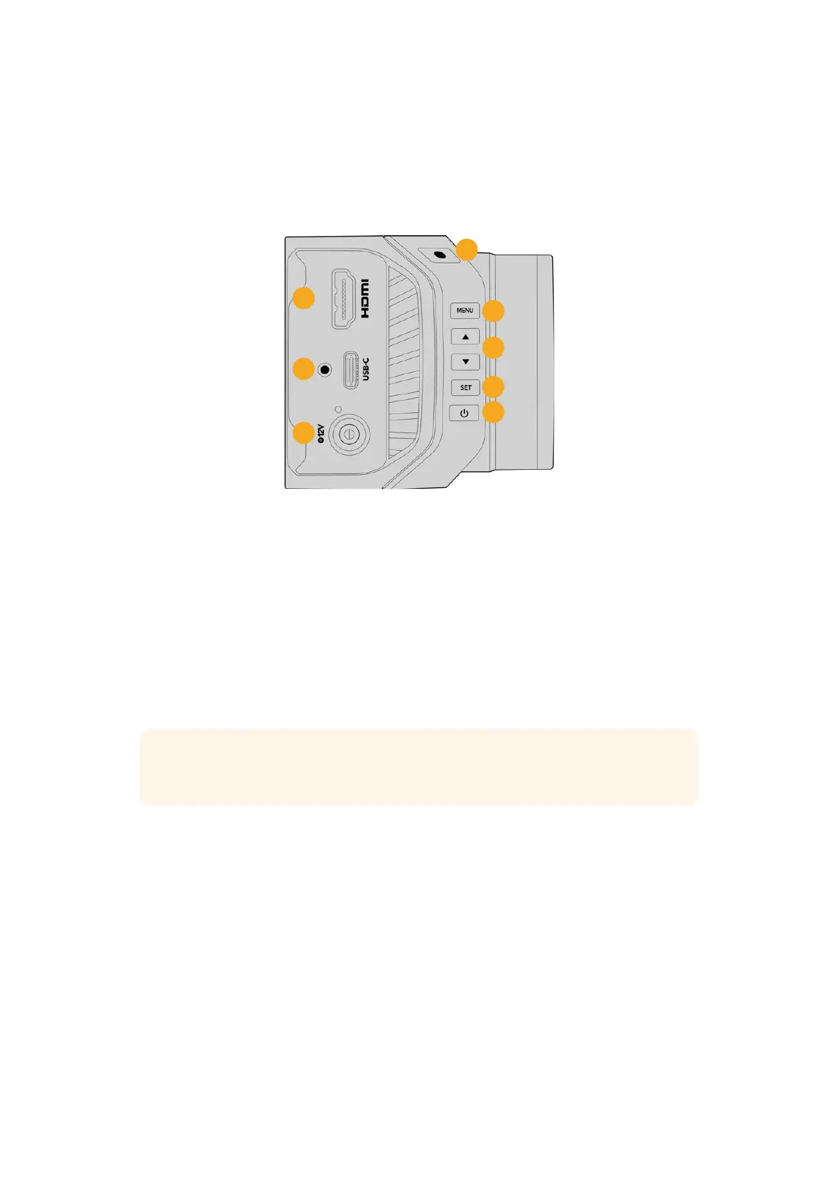 和Blackmagic Focus Demand。这 一 USB-C端口还可以用来更新摄 影机的内部软件。