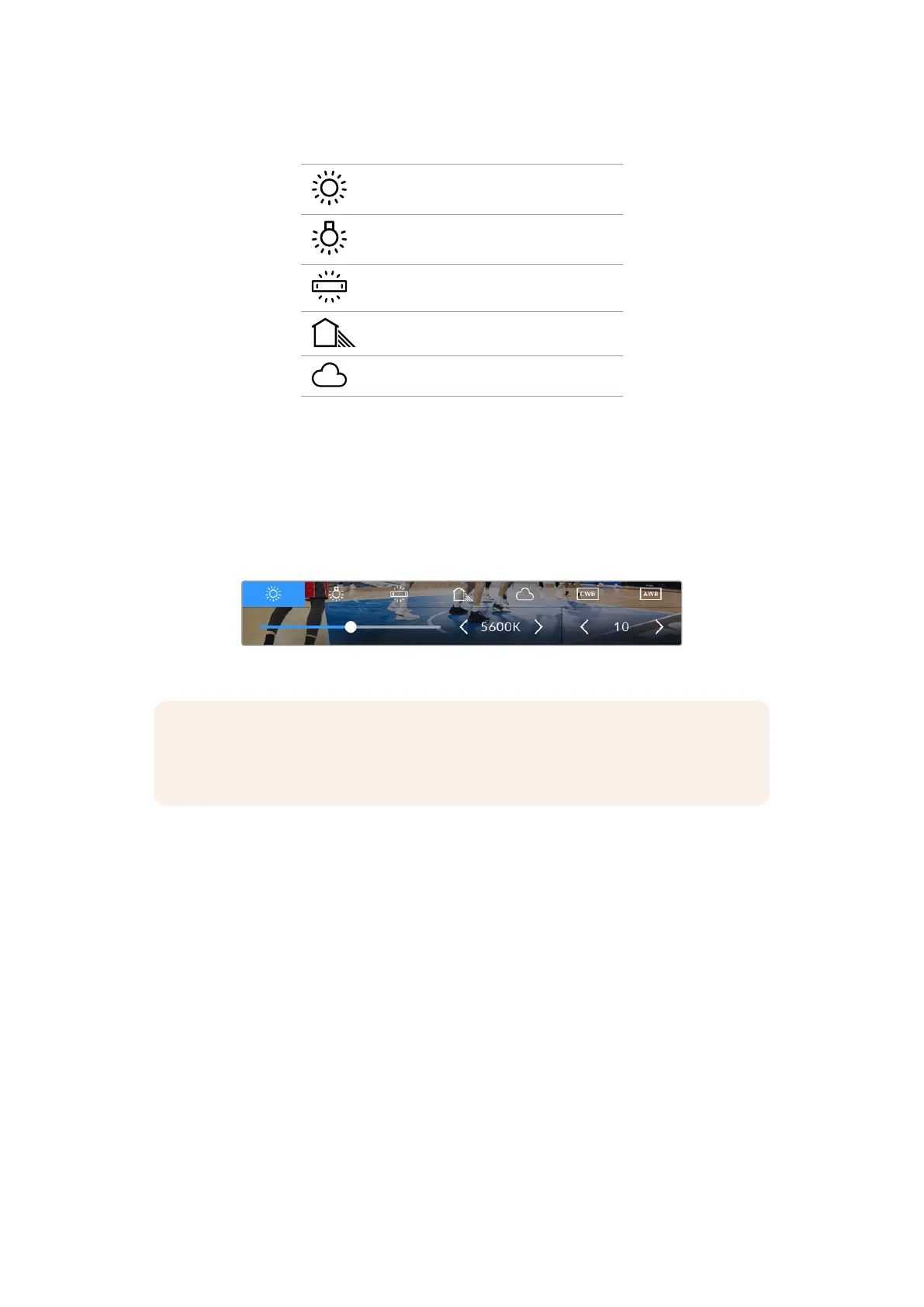 Micro Studio Camera 4K G2可自动设置白平衡。选择“AWB”可调出白平衡设置界面。