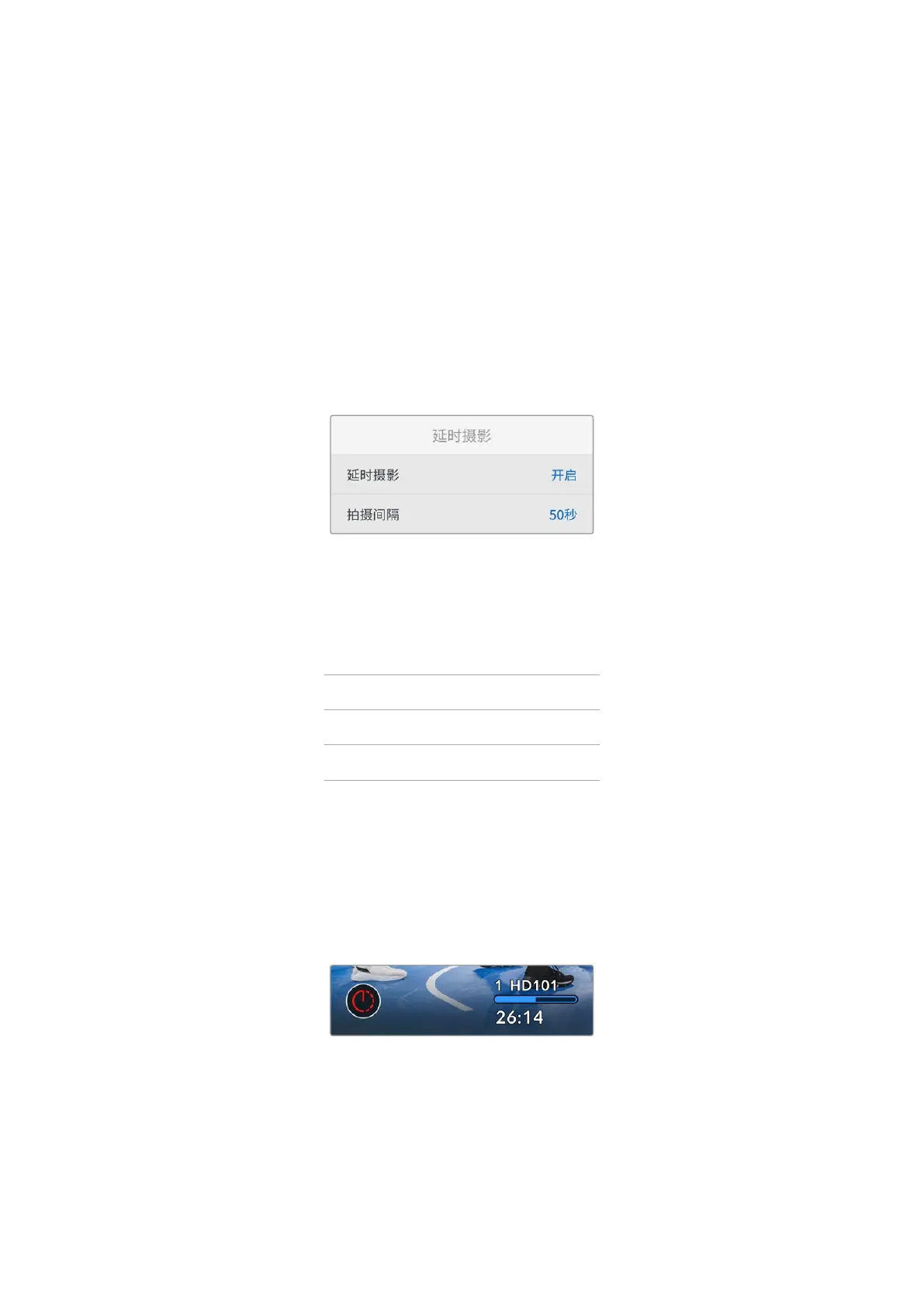 启用延时摄影模式时,记录按钮上会叠加显示相应图标