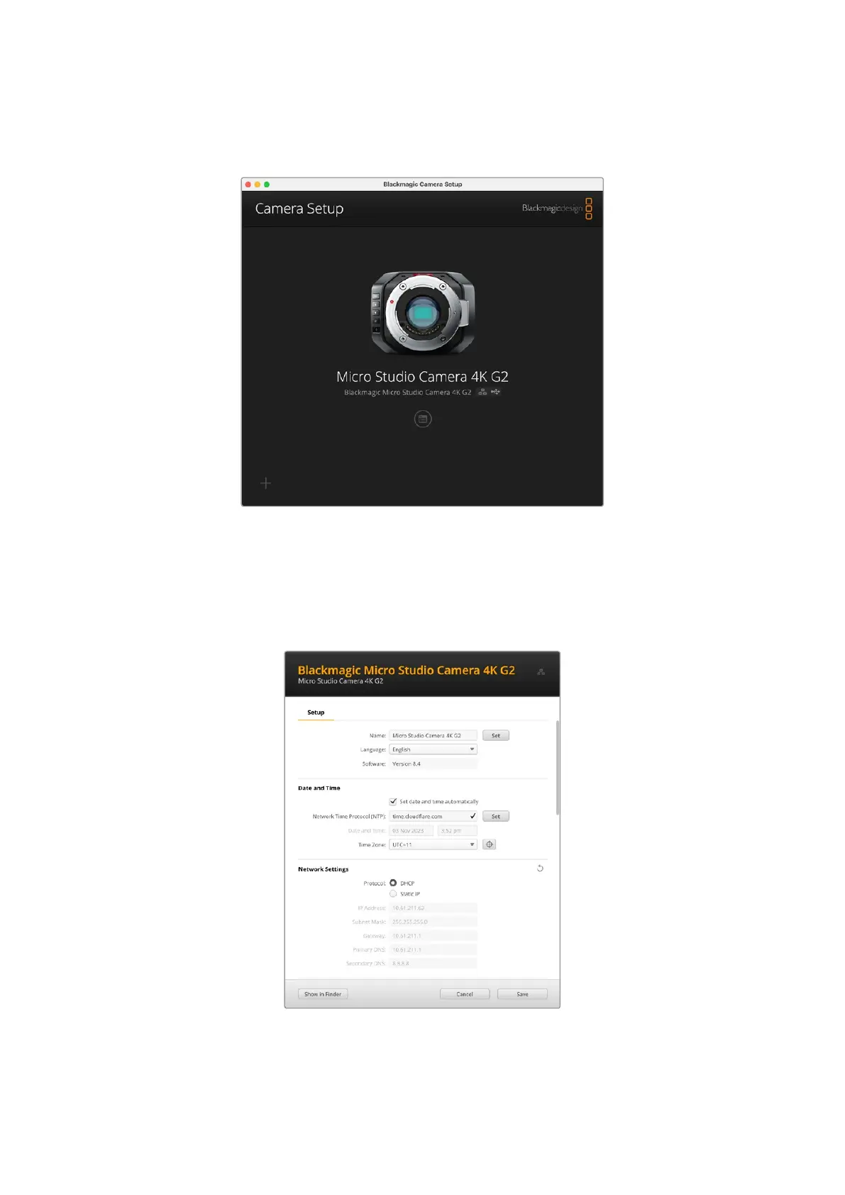 运行Blackmagic Camera Setup可以在实用程序的主页上Micro Studio Camera 4K G2
