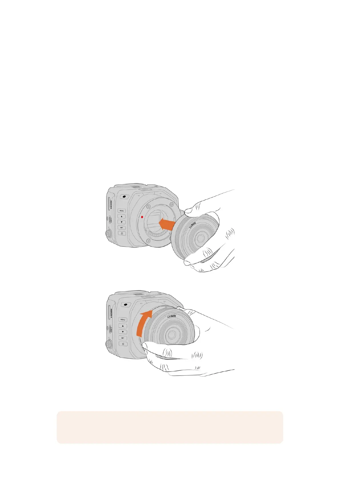 Blackmagic Micro Studio Camera 4K G2는 MFT 렌즈를 사용합니다. 렌즈를 장착하려면 먼저 먼지