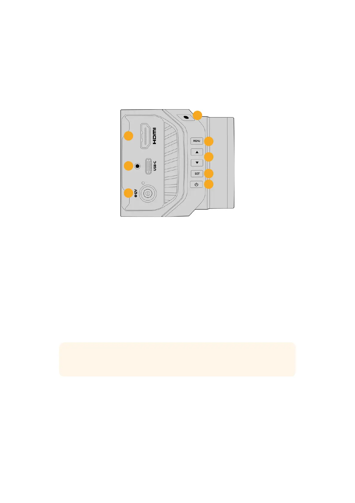 Blackmagic Focus Demand를 연결하는 데 사용할 수 있습니다. USB-C 포트는 카메라 내부