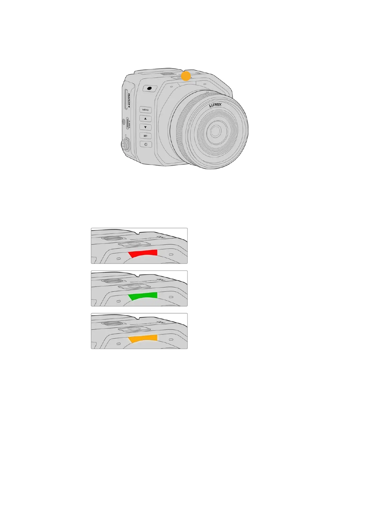 출력으로 전환되었는지, 카메라가 녹화 중인지를 탈리 조명을 통해 알 수 있습니다. 카메라가
