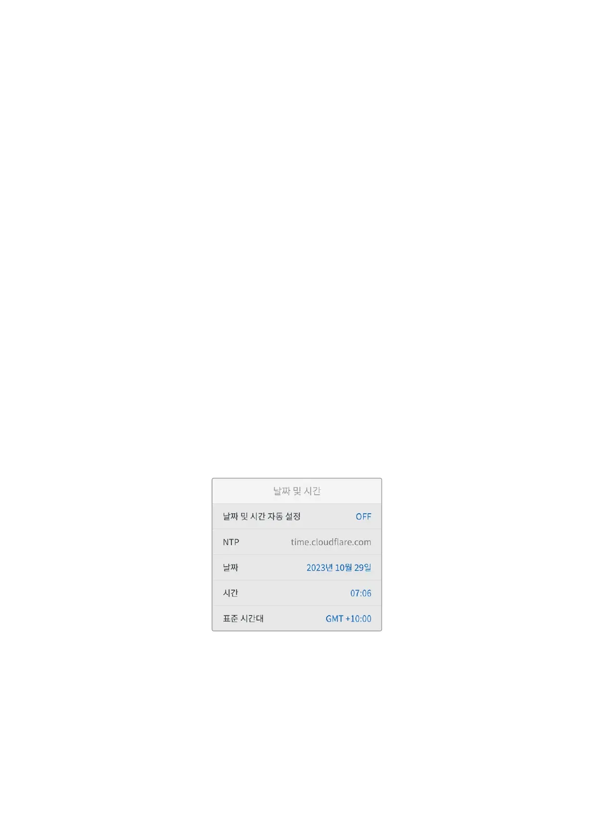 이며, Blackmagic Camera Setup을 사용하여 다른 NTP 서서버를 수동으로 입력할 수도 있습니다. 더욱