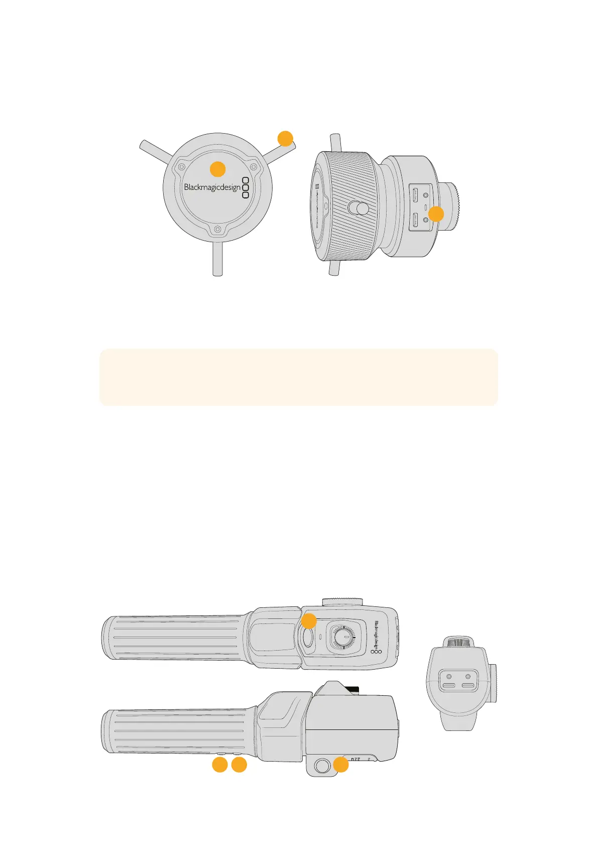 아래는 Blackmagic Focus Demand의 기능 및 연결 단자에 관해 설명합니다.