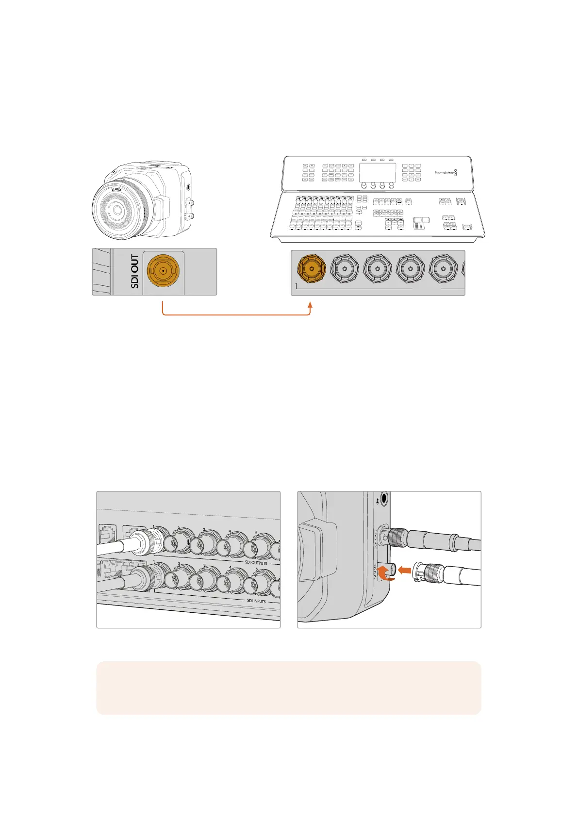 Соедините SDI-выход камерыBlackmagic Micro Studio4KG2 с соответствующим входом на