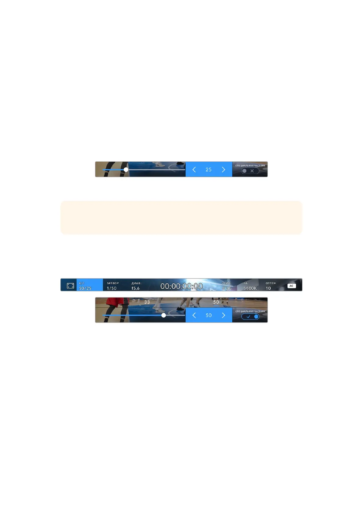 слайдером доступны стандартные величины специальной частоты, определяемые текущей