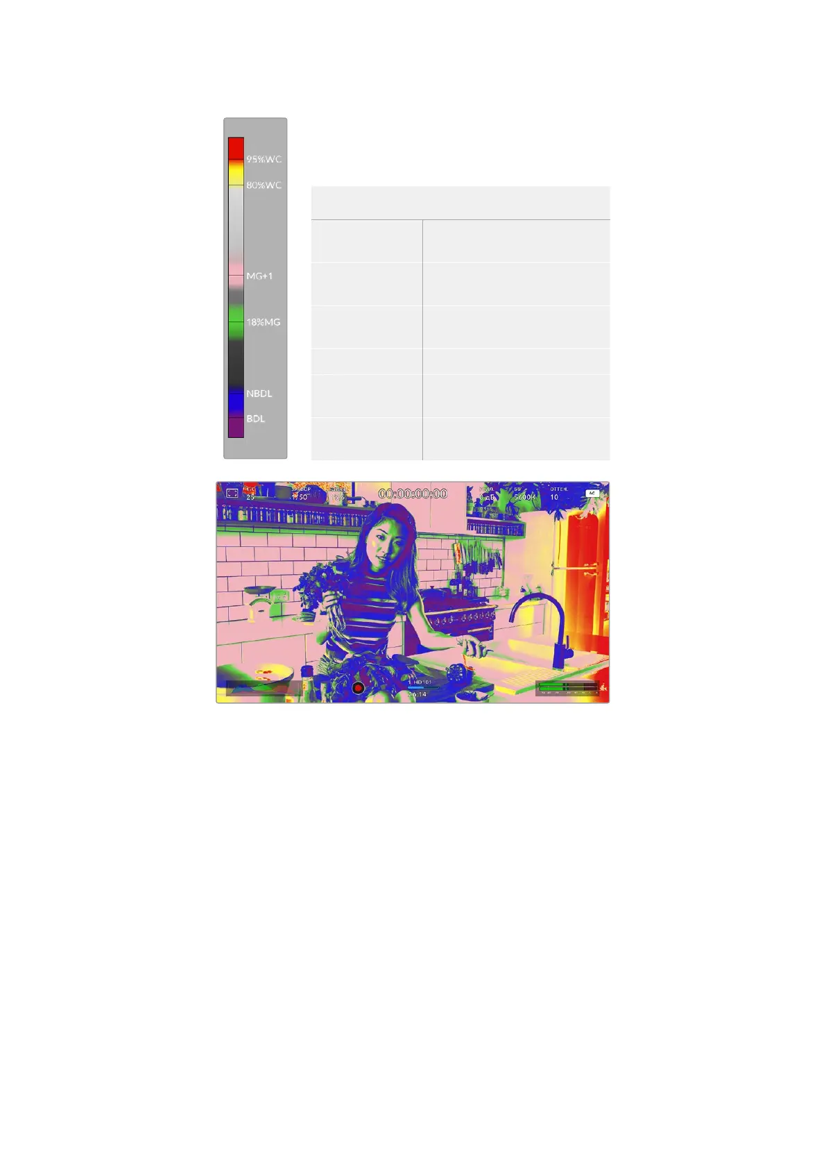 При правильной экспозиции тональность кожного покрова показана зеленым