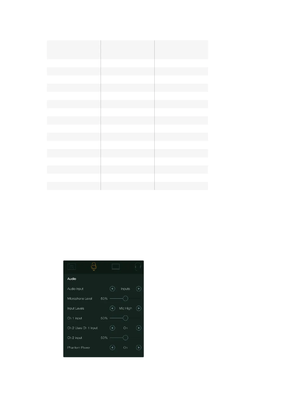 Audio settings – Blackmagic Studio Camera.