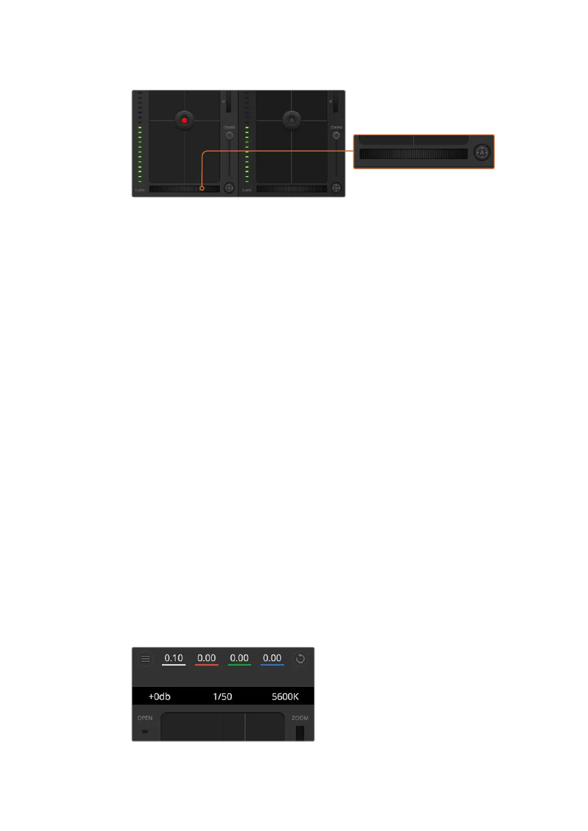 located at the bottom of each camera controller. Drag the wheel control left or right to manually