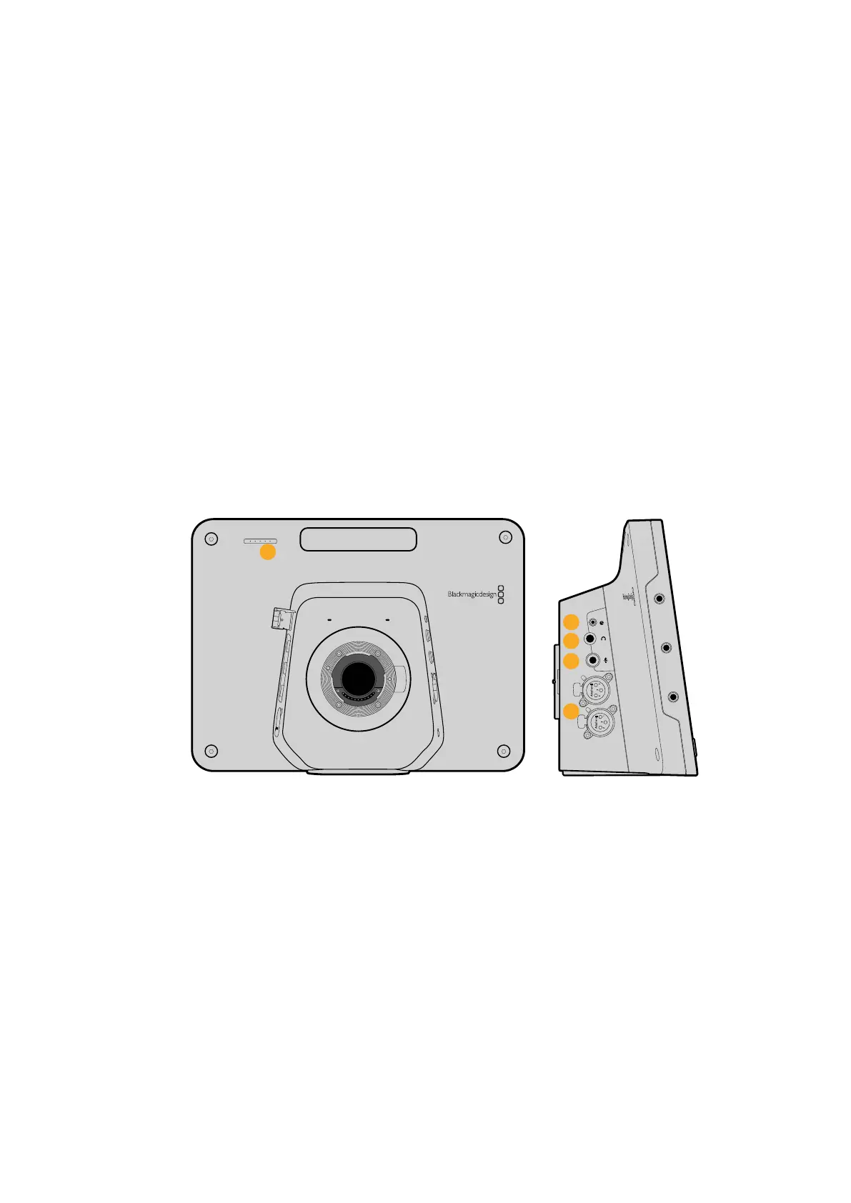 2 x 1/4” balanced XLR connectors for audio input. Refer to the ‘Blackmagic Studio