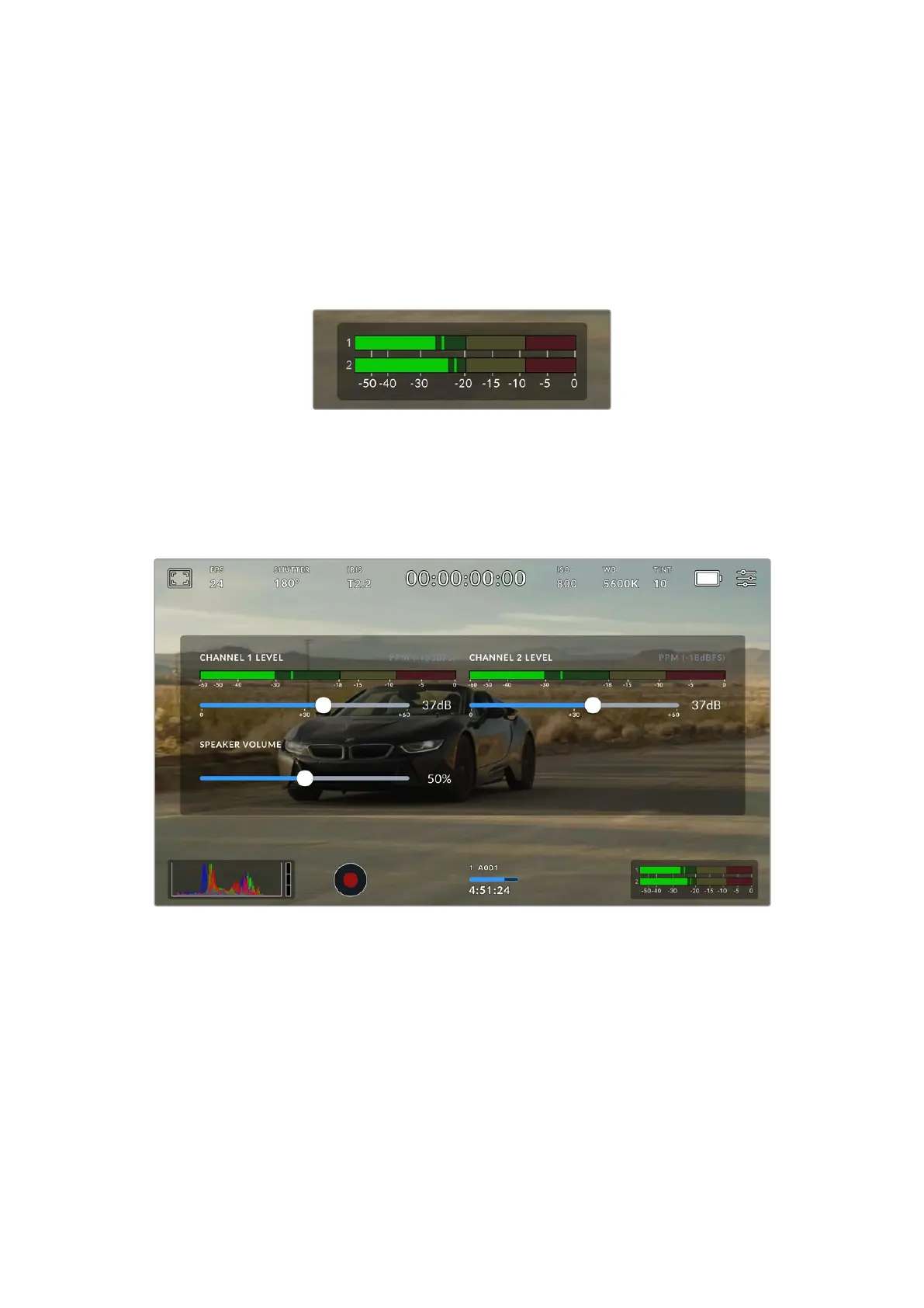 Tap the audio meters on your URSA Cine’s touchscreen toeasily access volume and headset or speaker settings