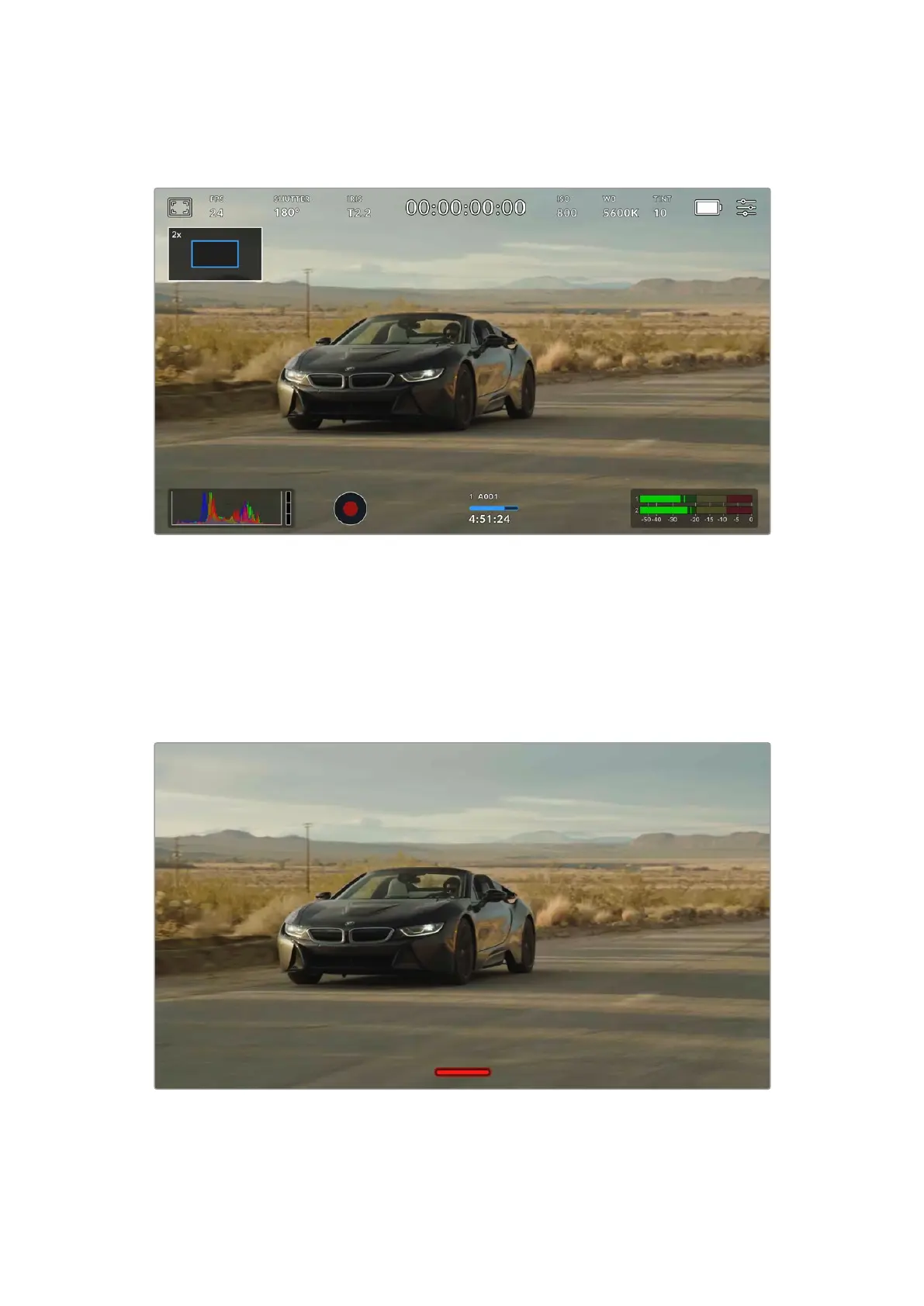 statustext and meters. Simply swipe up or down on URSA Cine’s touchscreen, or press the
