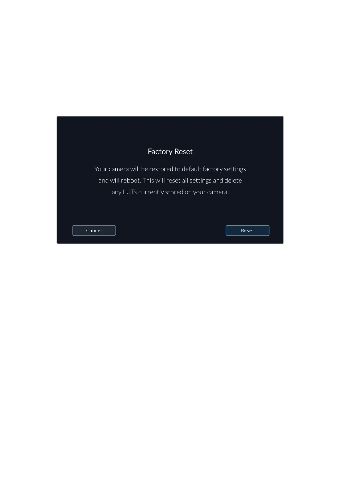 It’s important to note that a factory reset erases any presets and custom LUTs, and resets all
