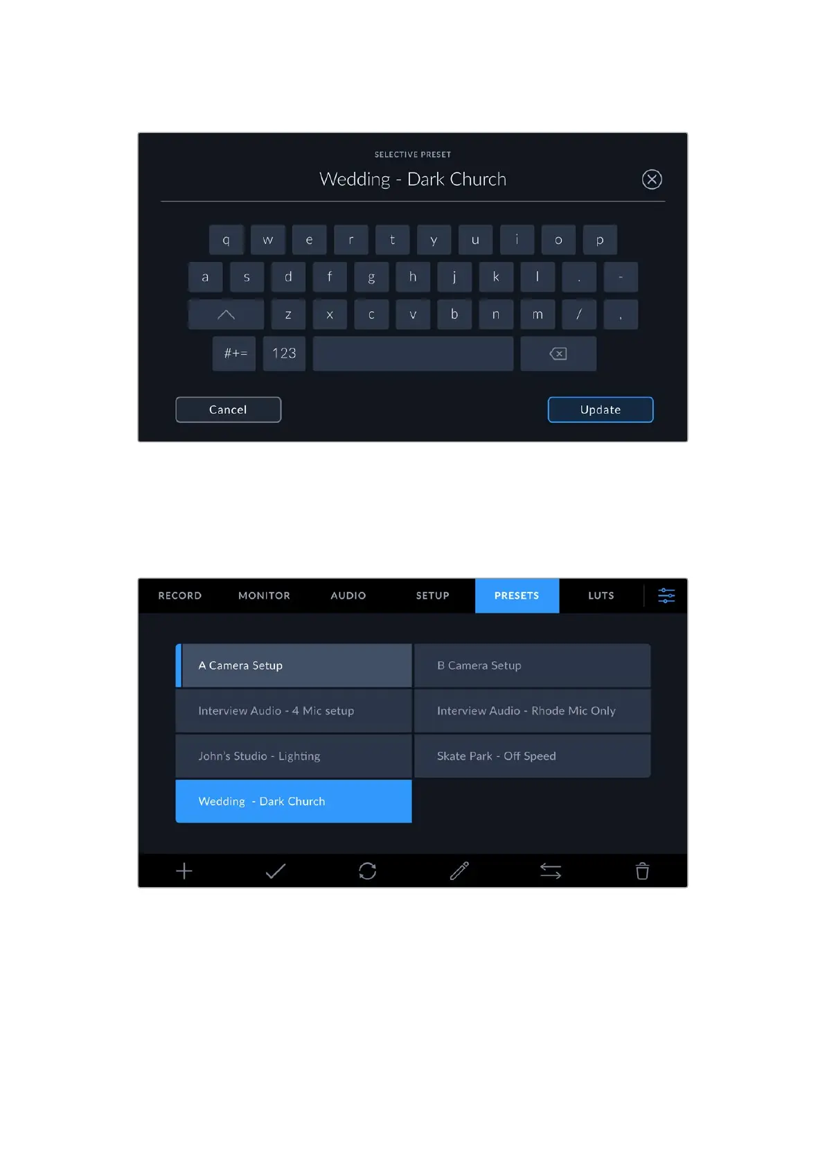 ifyou want to update the preset with your URSA Cine’s current setting. Tap ‘update’ to confirm.