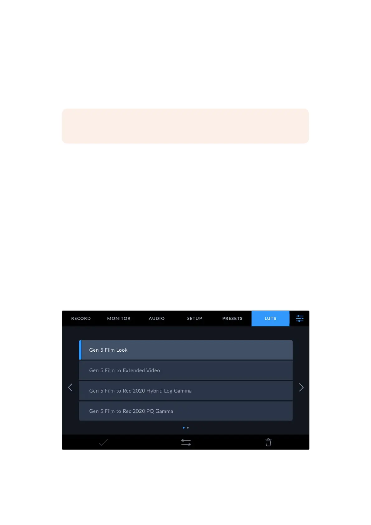 The ‘LUTS’ menu lets you import, export and apply 3D LUTs to your camera’s outputs.