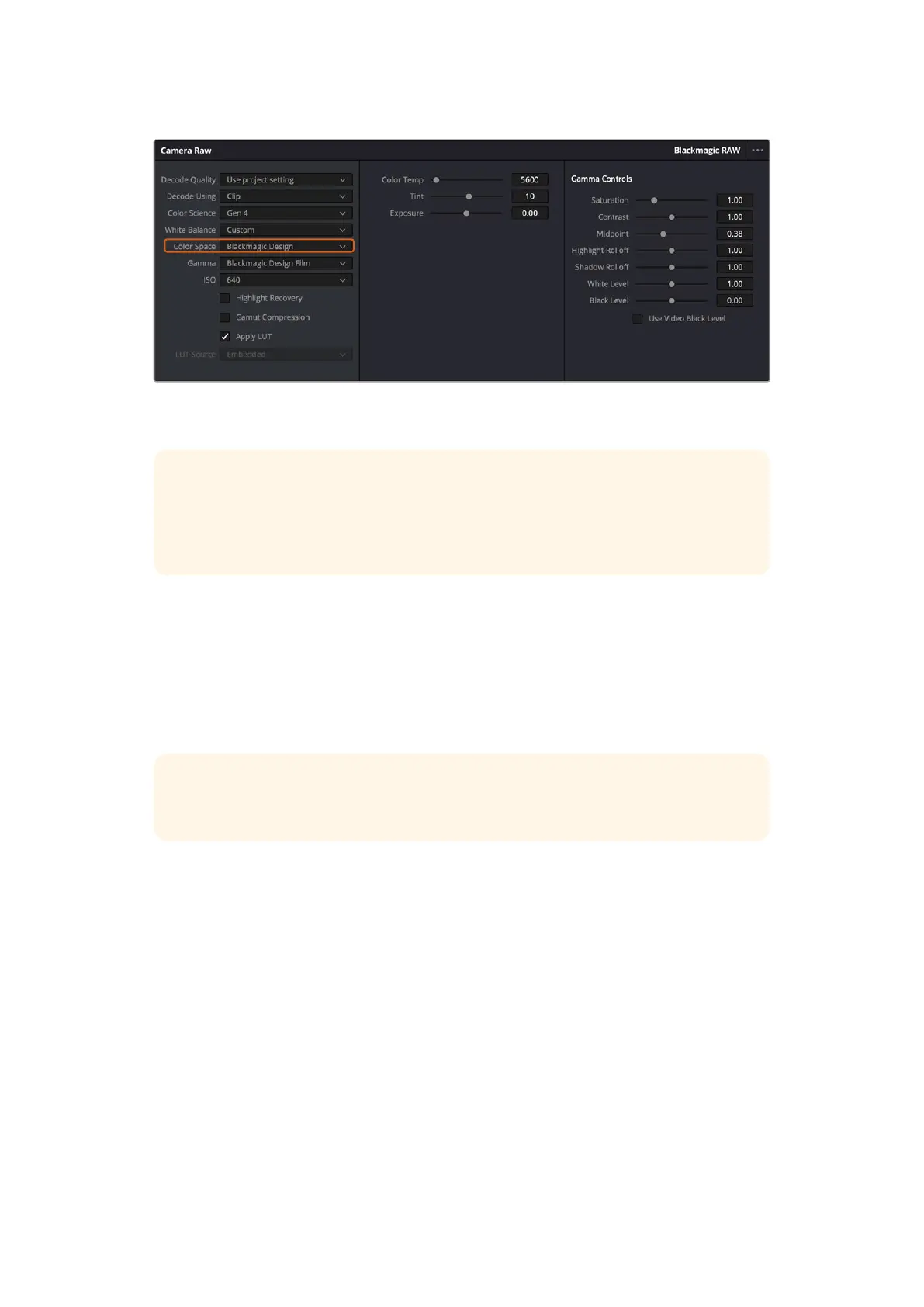 1 Adjust the gamma controls for your Blackmagic RAW clip.