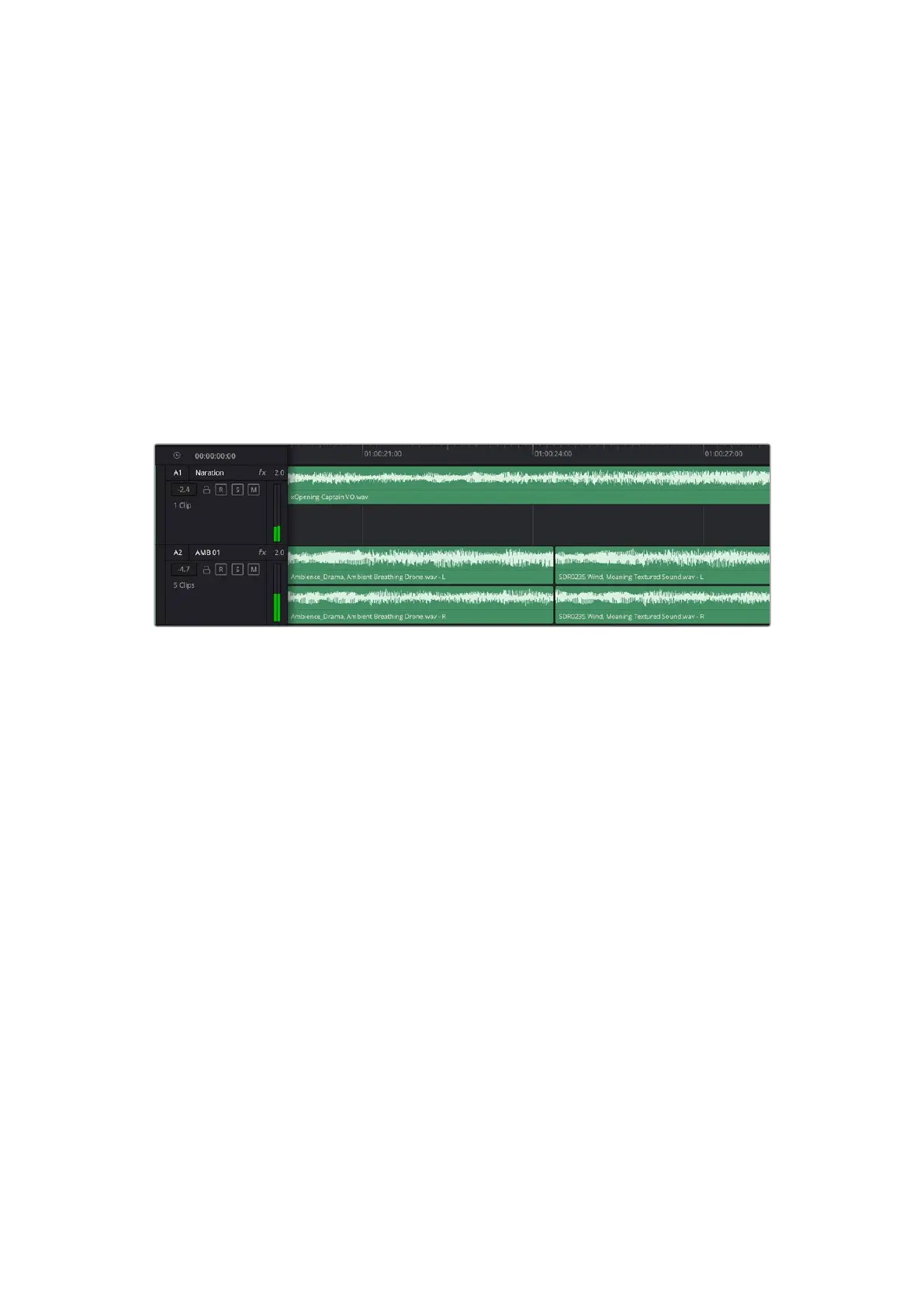 Tracks: Each track on the Fairlight page is divided into lanes, which show each individual