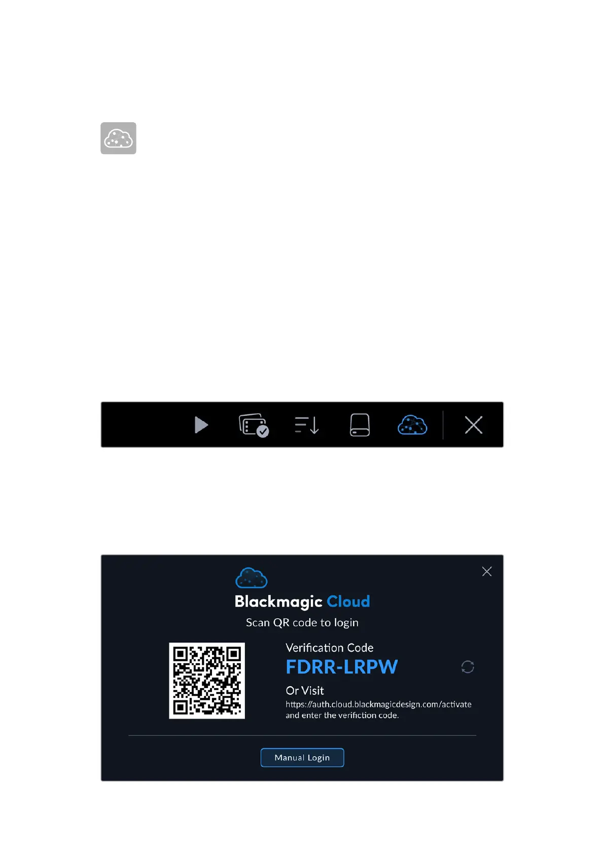 tethering or hotspot feature. Once connected to the Internet, the Blackmagic Cloud icon at the