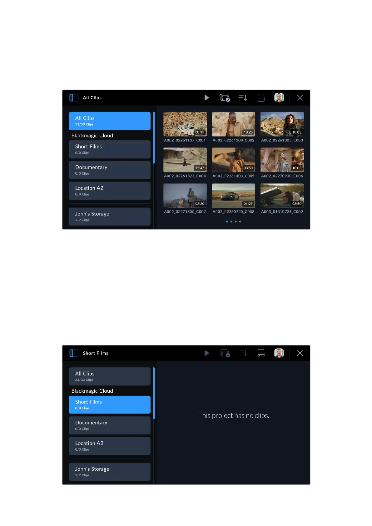 as you record clips to your camera’s media. When a project is selected in the projects panel,