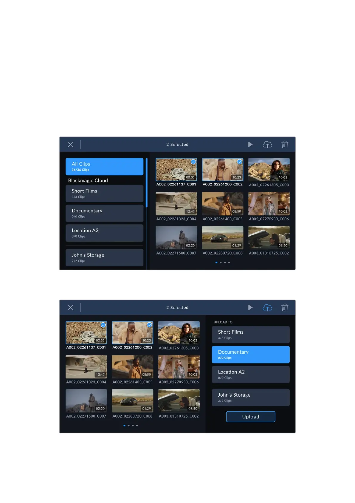 4 Tap the ‘cloud upload’ icon. Select the Blackmagic Cloud projects that you want to upload