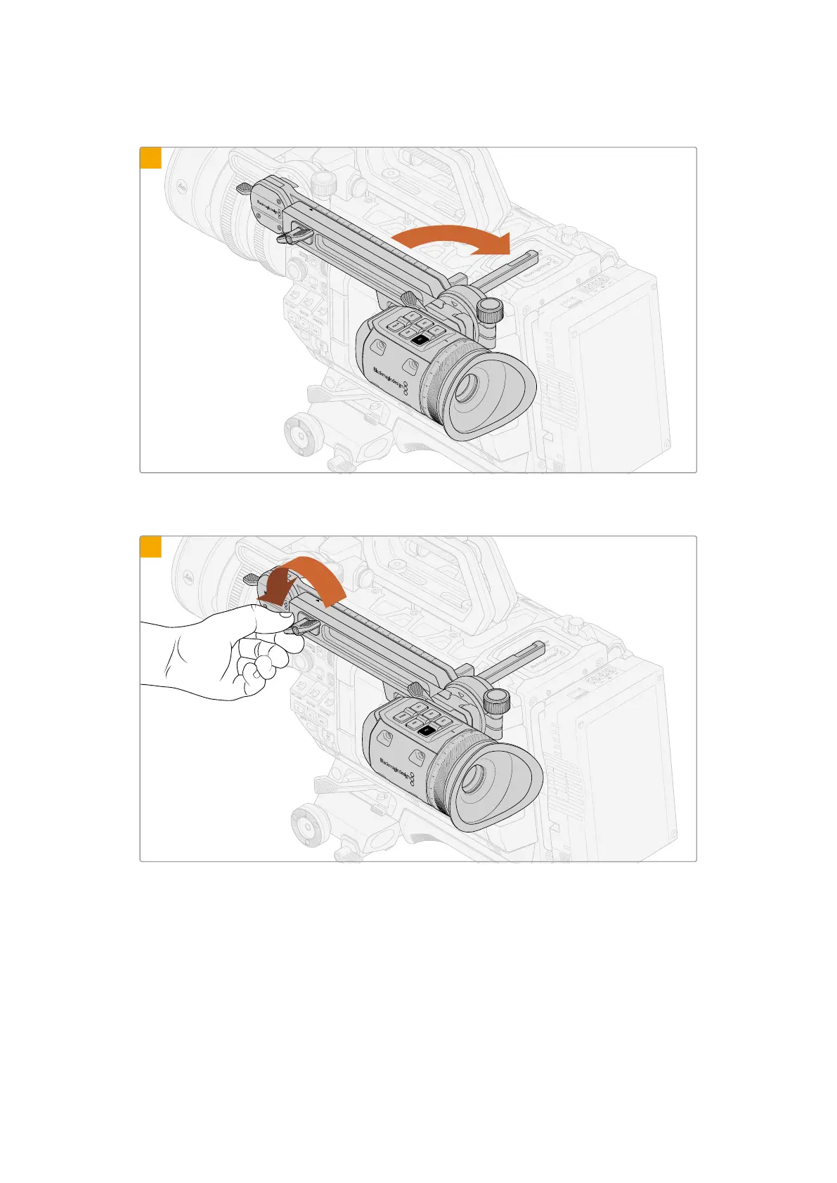 While attaching URSA Cine EVF Extension, you can add support by swinging open the support brace and