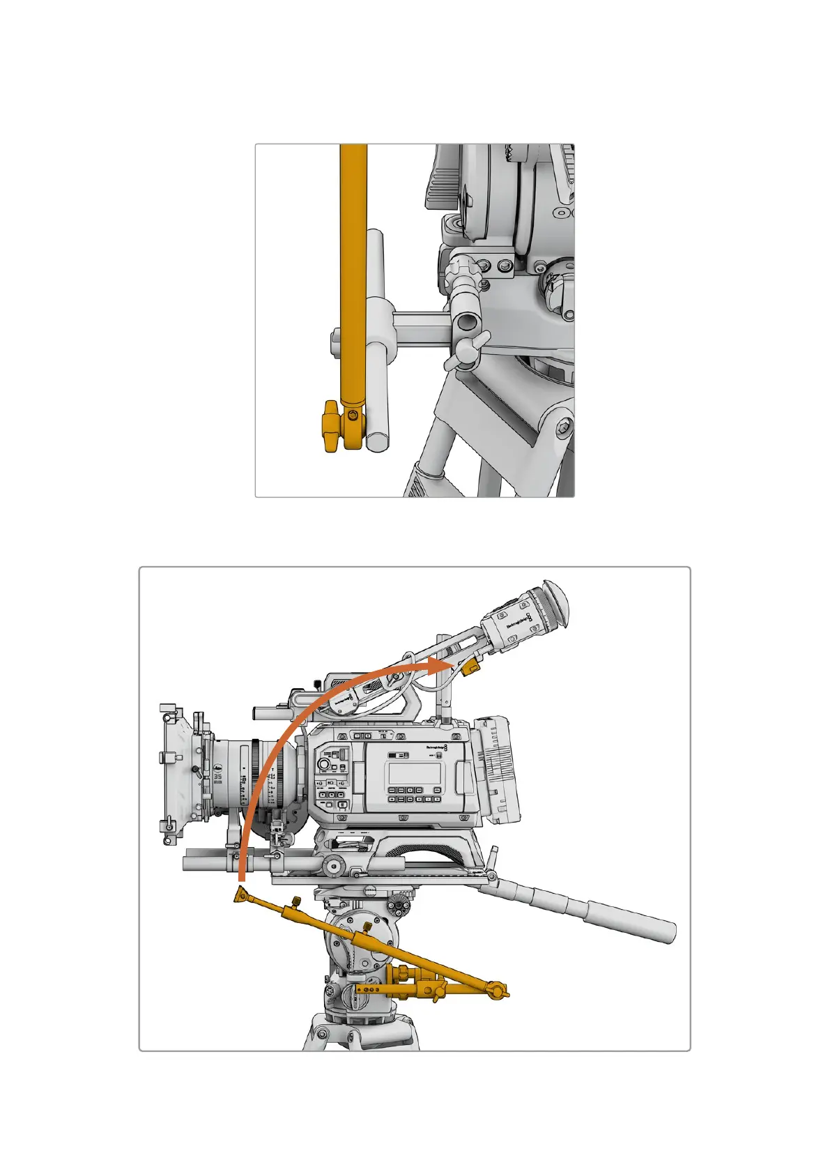 5 Now swing the levelling rod up and extend to meet URSA Cine EVF Extension’s leveller