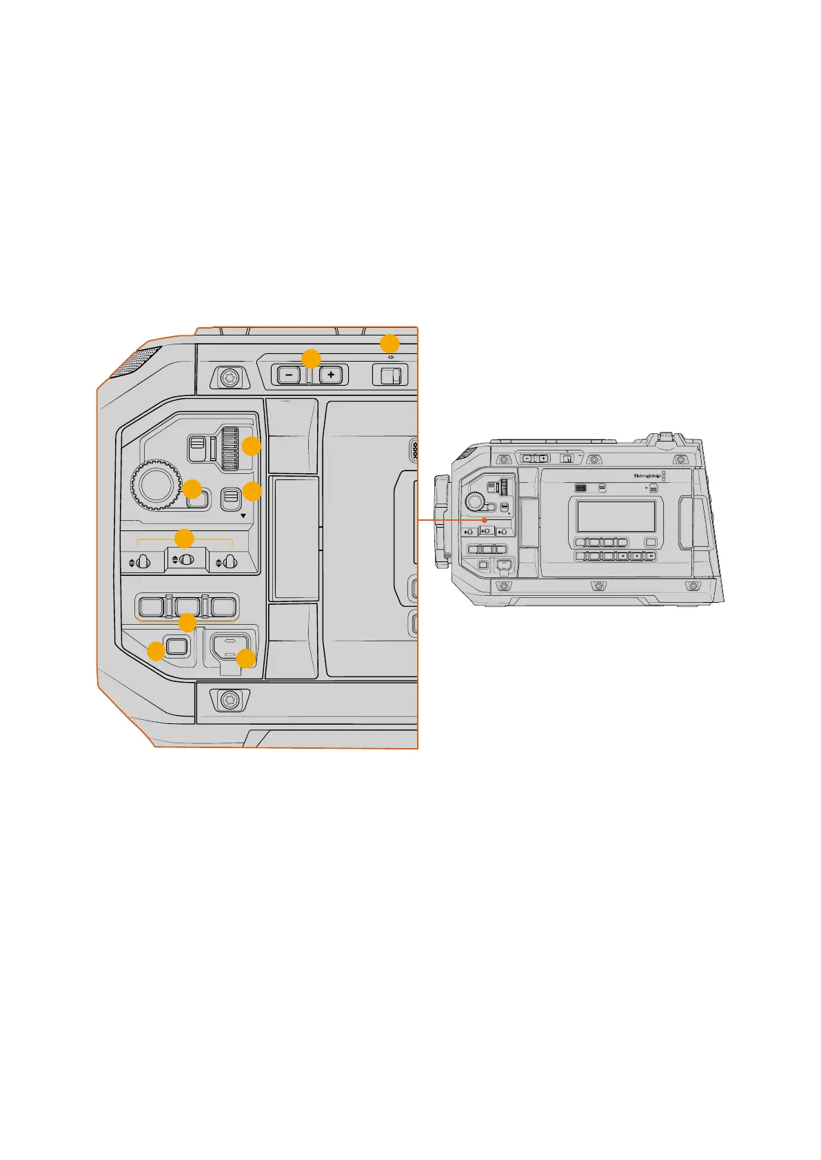 Your URSA Cine’s forward control panel groups together all of the controls you might need