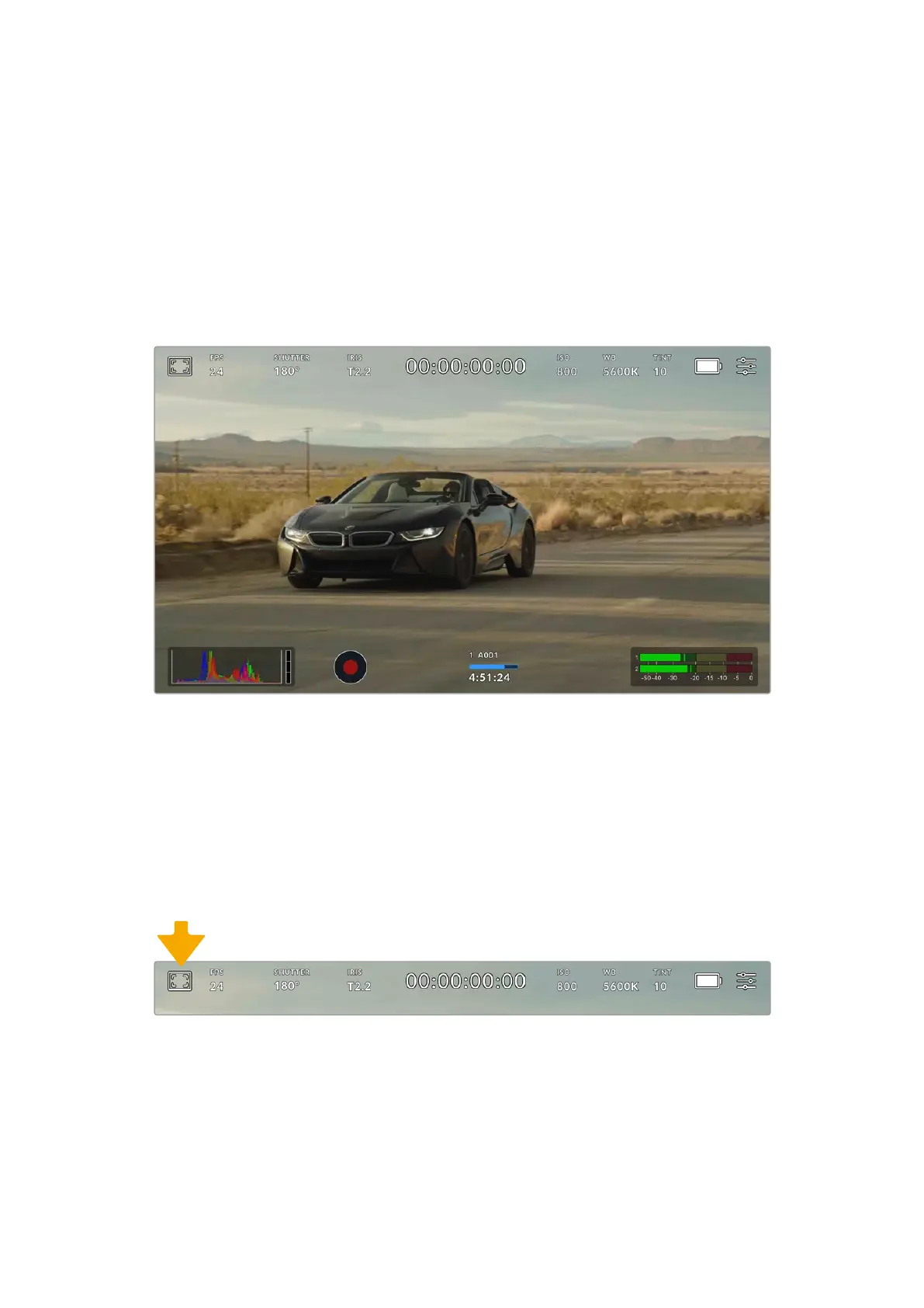 Tap the ‘monitor’ icon at the top left of your URSA Cine’s LCD touchscreen to access the