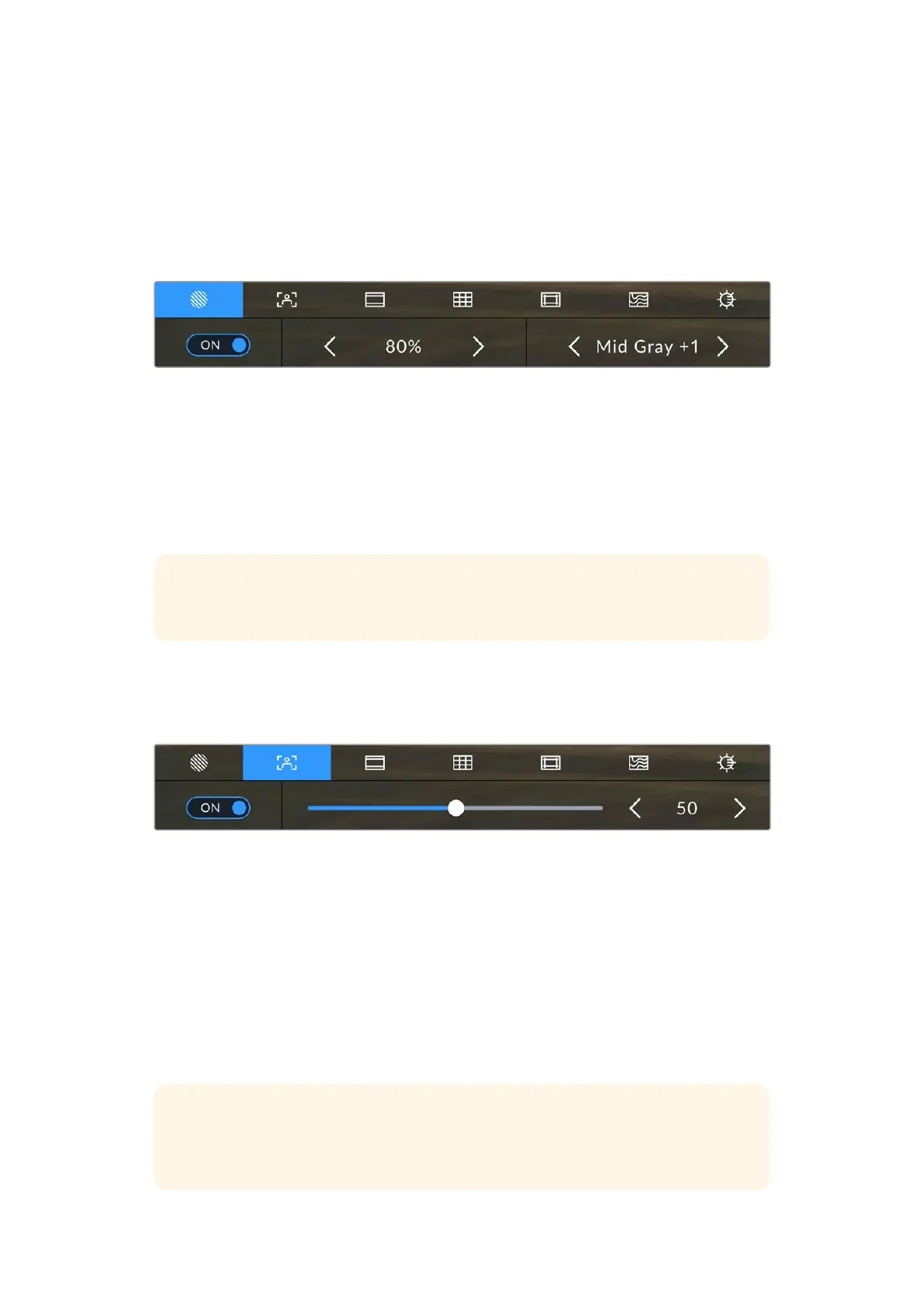 percentage value. The second zebra setting lets you turn mid gray zebra zones on or off, or mid