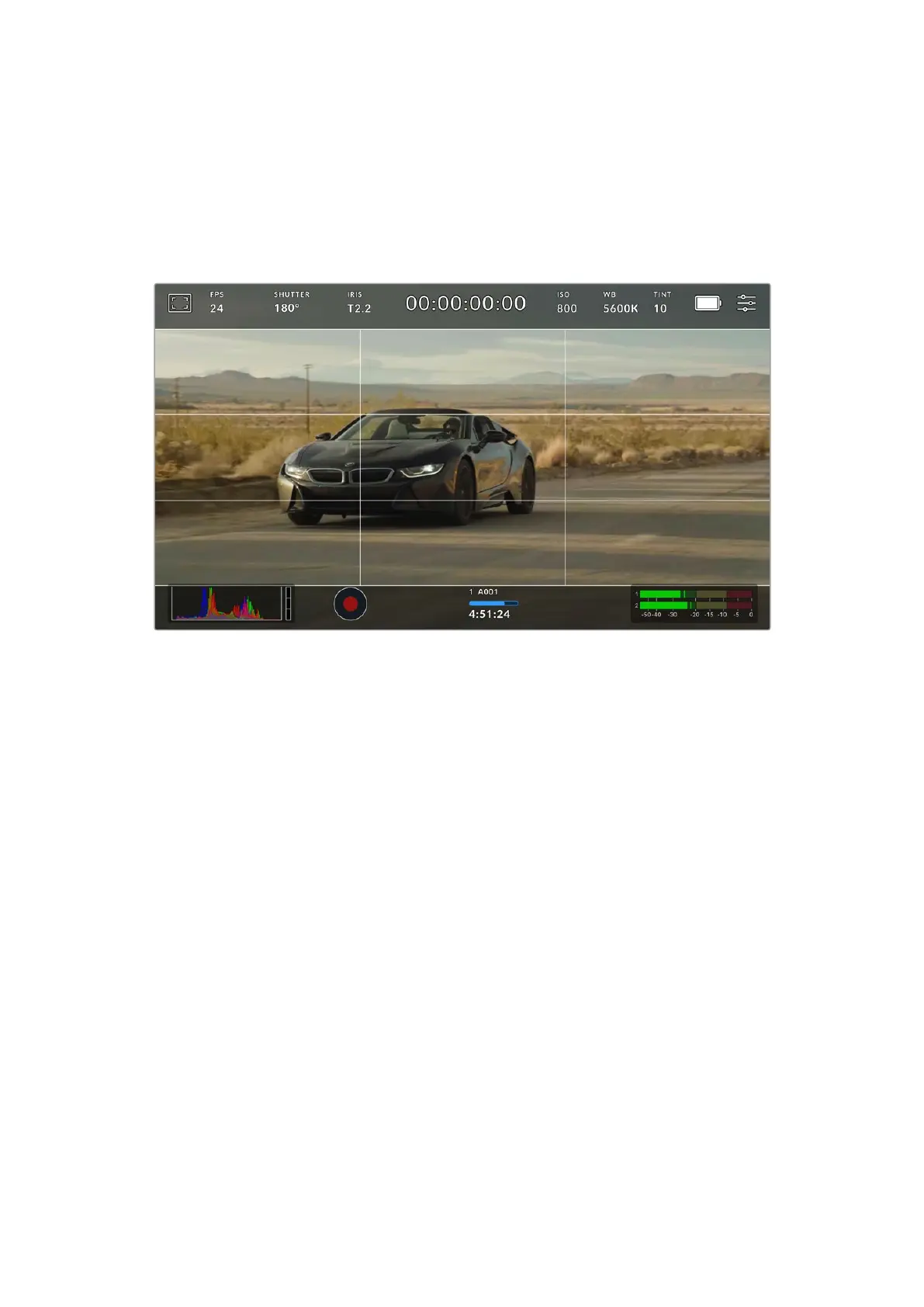enabled, your URSA Cine can show a rule of thirds grid, horizon meter, and crosshair or dot.