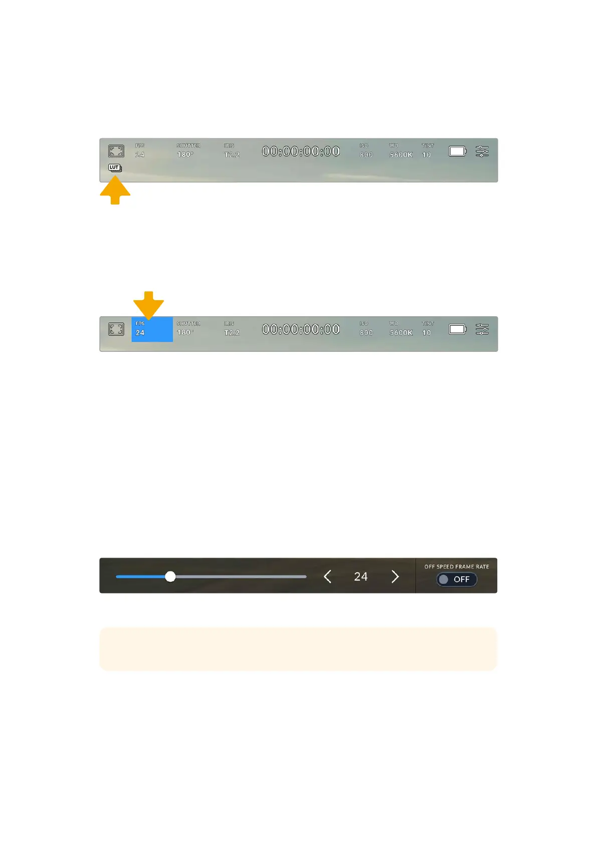 Tap your URSA Cine’s frames per second indicator to access frame rate settings