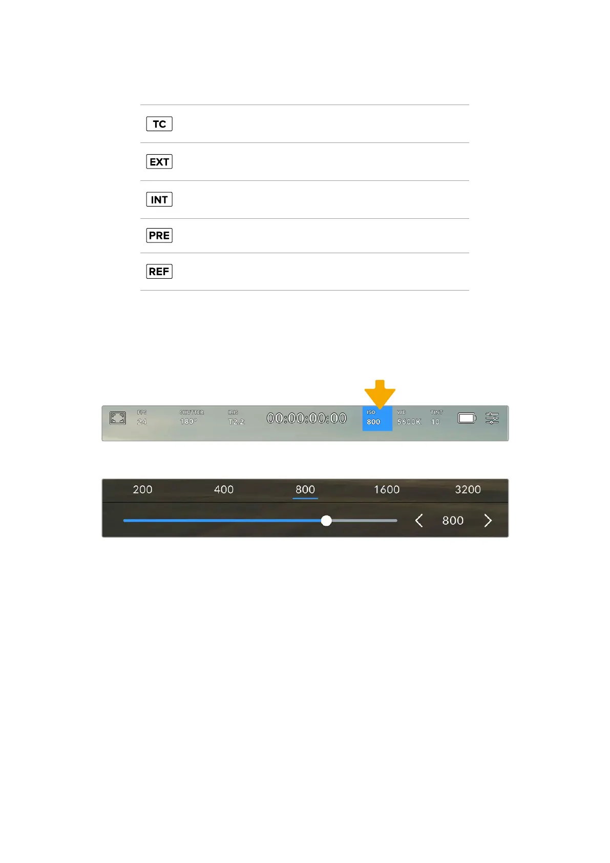 Tap your URSA Cine’s ISO indicator to access ISO settings