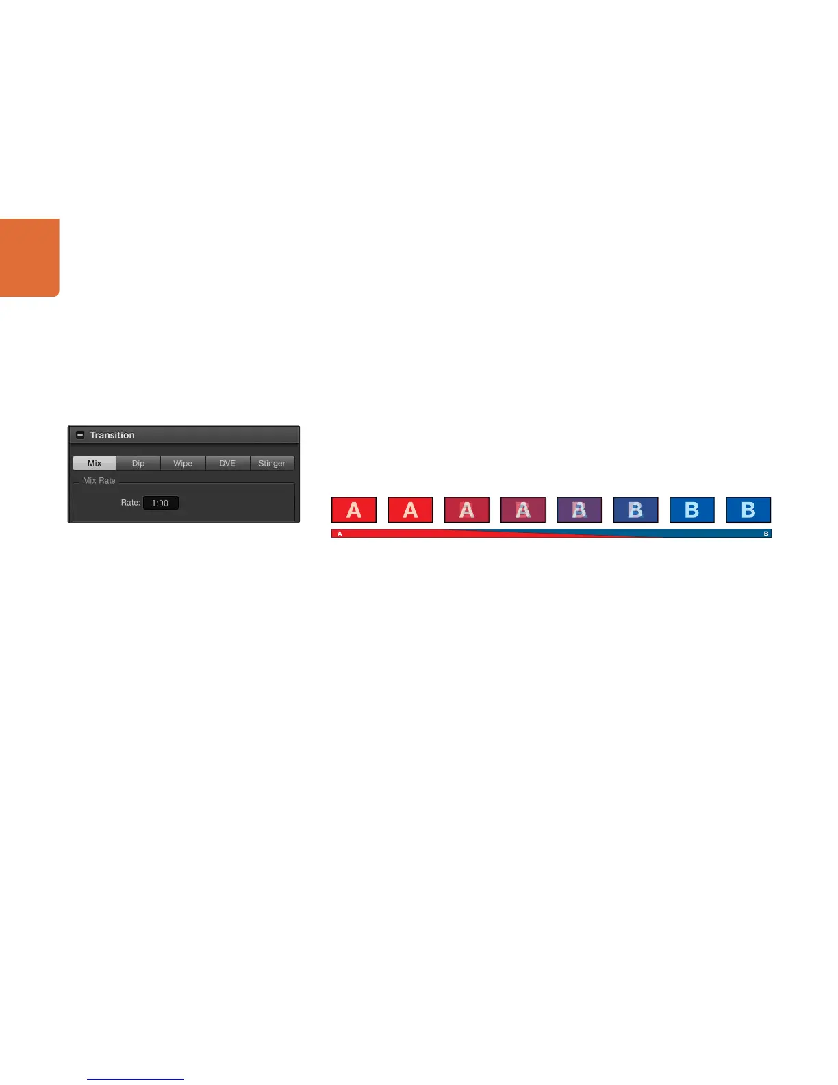 and phasing in another. Stinger and graphic wipe are special transitions which will be covered in a later
