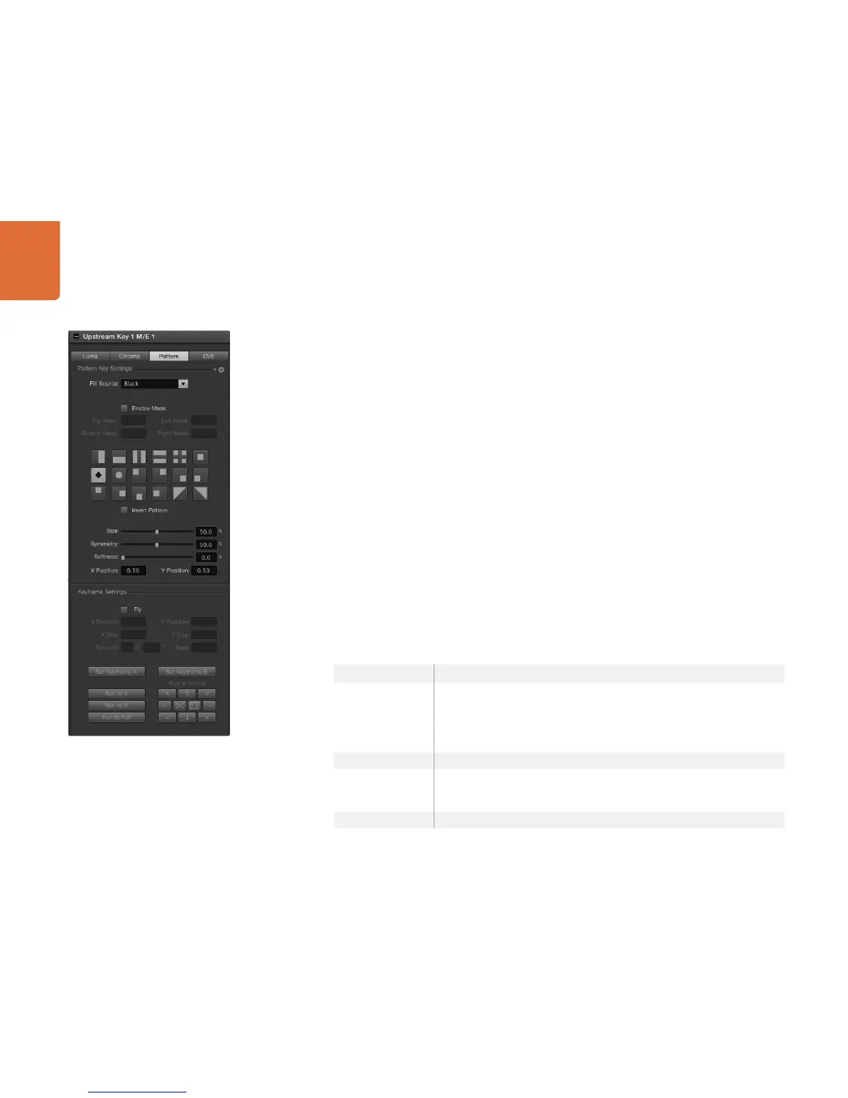 To set up a pattern key on upstream keyer 1 on the software control panel:
